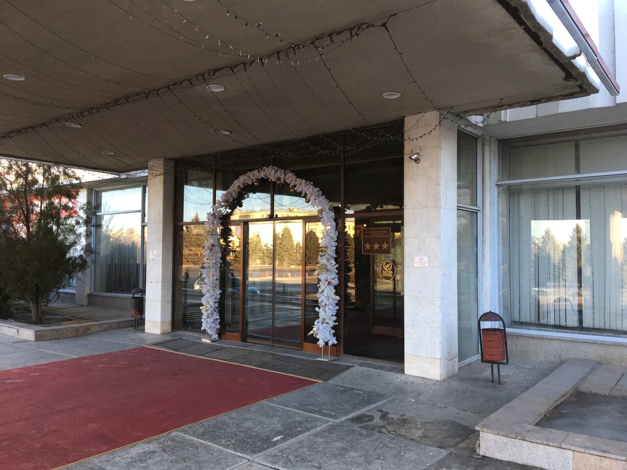 - Город зеленый, красивый, светлый.; Давали обогреватели (несмотря на их плохую работу).; Большой многоэтажный презентабельный отель (внешне).; Красивое место.; Улучшенные номера или люкс — вполне сносно.