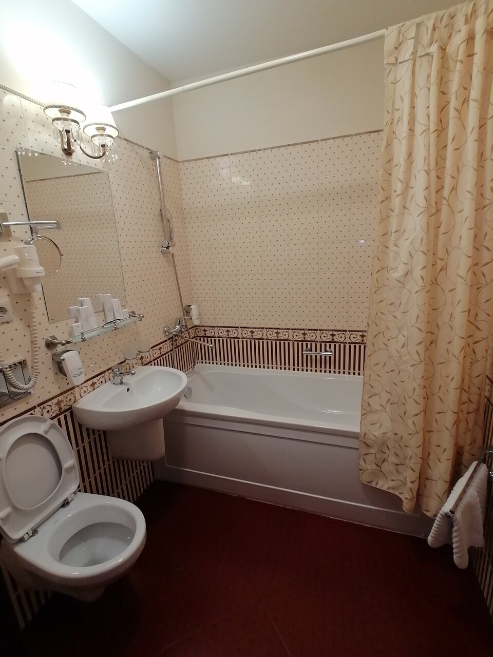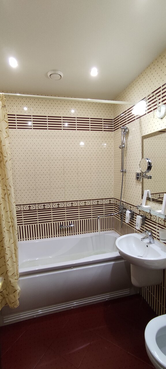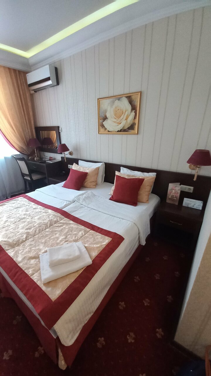 Вообще 4+, пол звезды снимаю за то, что номер бронировали на 2 их гостей, а в номере 1 комплект всего, полотенца, халат, тапочки, зубной набор, все в одном экземпляре. Конечно, можно пойти на ресепшен и сказать и скорее всего дадут, но тогда это не сервис за который можно поставить уверенные 5*. В целом отель приличный, завтраки довольно вкусные и даже можно сказать разнообразные. Номер брали с большой кроватью, в целом все как на рекламных фото. Приложу чтобы не сочли отзыв заказным. За смятую постель, сори, приехали поздно, фоткали уже утром.