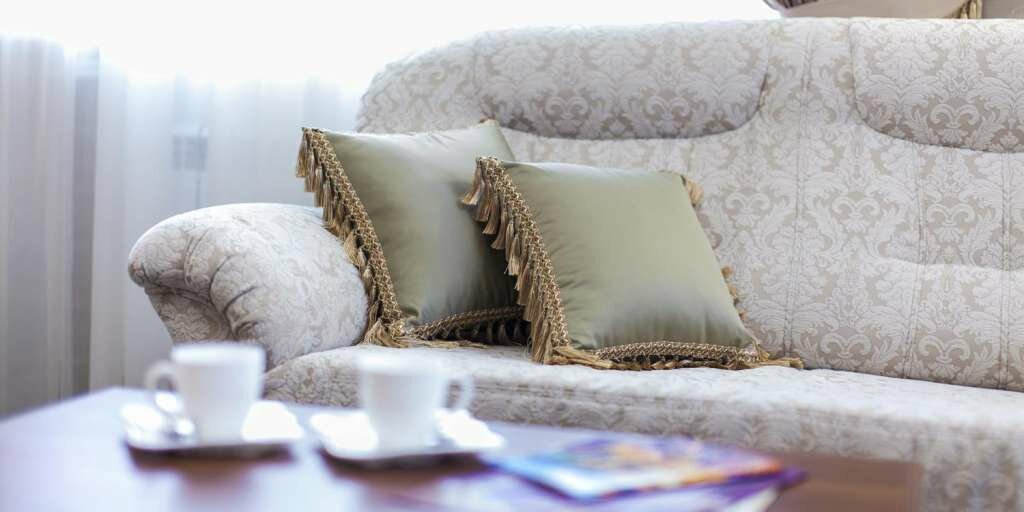 - Порванная обивка дивана.