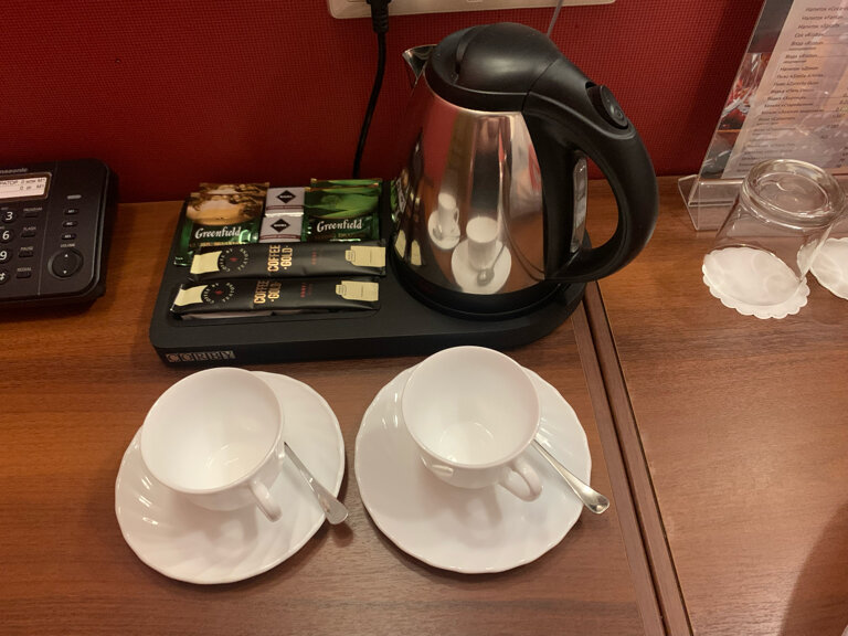 - В номерах есть чайник, чай, вода, зубные наборы.