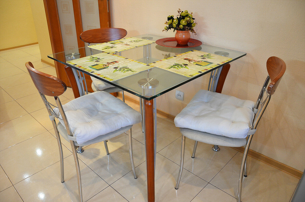 Квартира бомбовская! Я такой ремонт еще не видел.Все такое крутое и очень чисто. Очень много приятностей , например клевый душ, красивые бокалы, на потолке куча фонариков и всяких висюшек . Мне конечно не пригодилось, но все равно плюс в том,что 2 больших красивых кровати и 2 дивана кожаных. Из минусов только то ,что 4 этаж ,я привык снимать видовые квартиры. А так все супер