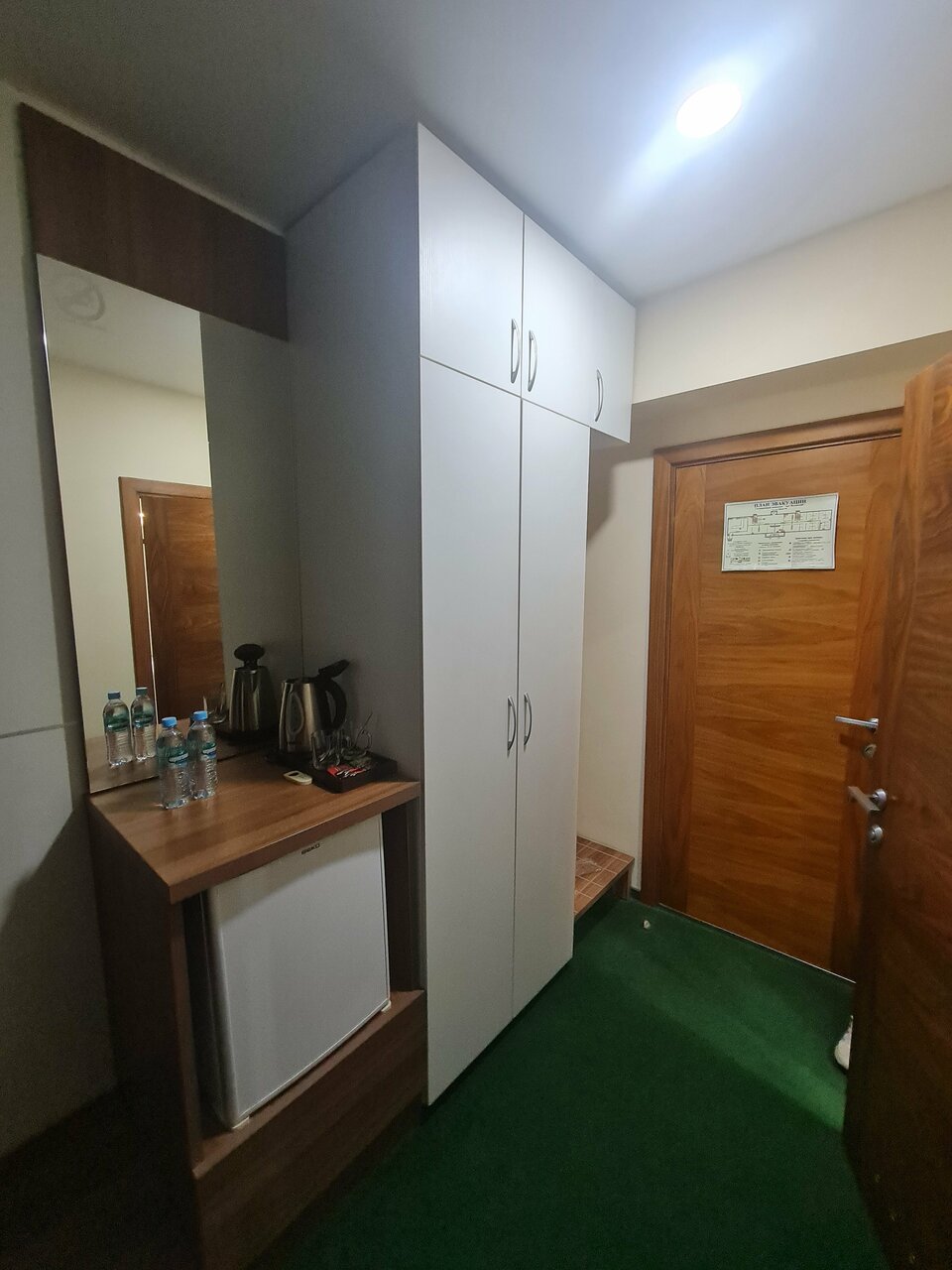 В номерах чисто,аккуратно. Но с водой огромные проблемы. Были с ребятишками,воду на этажах,в кулерах,меняют раз в сутки . Могли бы в таких случаях менять, как минимум два раза,а лучше три, чтобы детишкам пить не хотелось. В общем умирали от жажды.