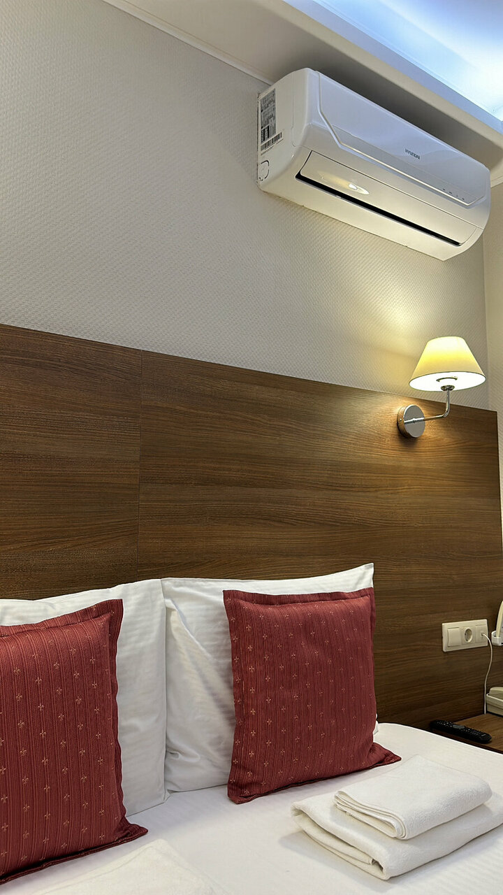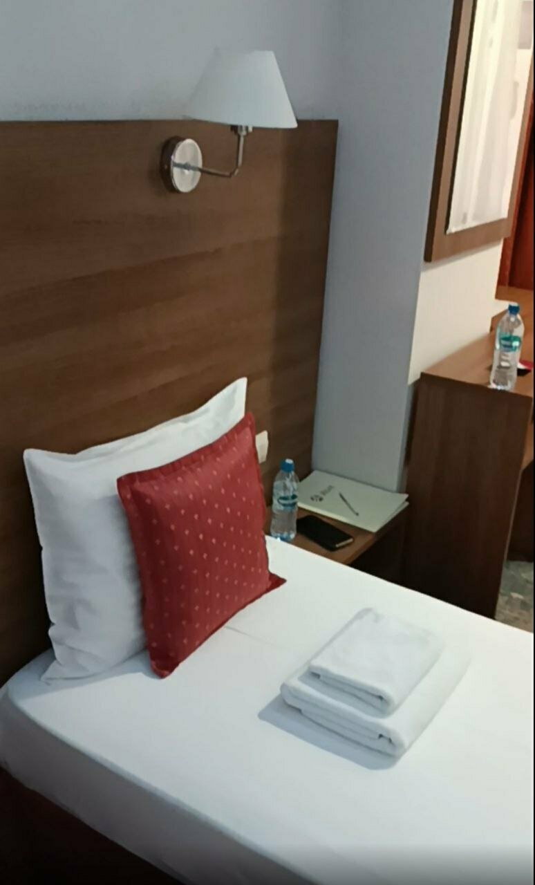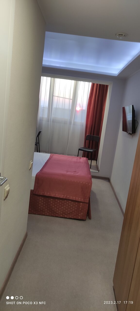 Номера чистые. Убираются ежедневно. Цены приемлимые. Wi-fi рабочий, а не для галочки. В коридорах стоит бутилированная вода — холодная и горячая. Из минусов — завтрак только по времени. Дополнительно не заказать.