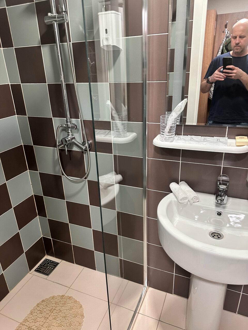 Довольно неплохая гостиница. Стандартный номер большой с просторной душевой кабиной. В холле можно бесплатно налить чай и кофе. Не понравились следующие моменты: в душе плохо уходила вода. На завтрак не большой выбор блюд и не очень вкусно.