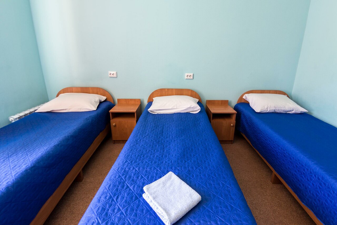 Однокомнатный номер для комфортного отдыха. Номер оборудован современной мебелью.три раздельные односпальные кровати с удобными ортопедическими матрасамидве прикроватные тумбочкииндивидуальные розеткиписьменный столшкаф для одеждызеркал