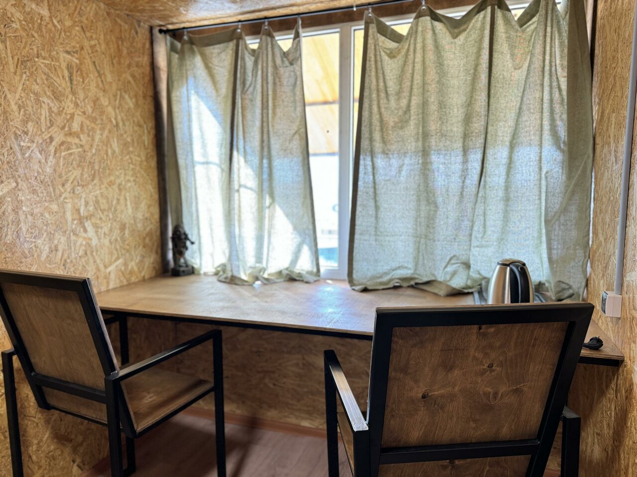 Очень оригинальный отель в хорошем смысле, понравилось всё. Задумка отличная, отель растраивается, домиков будет больше, хозяива очень повторюсь очень приветливые! Находится в самом центре города, рядом парк, можно отдохнуть, магазины также рядом. Хотелось бы пожелать отелю процветания, сделать навигацию для тех кто на машине, а то не понятно куда двигаться в конце пути, также хотелось бы в следующий раз увидеть москитные сетки на окна, и стол необходимо обработать так как продукты легко вписываются в дерево, ну либо просто постелить скатерть. Однозначно рекомендую!