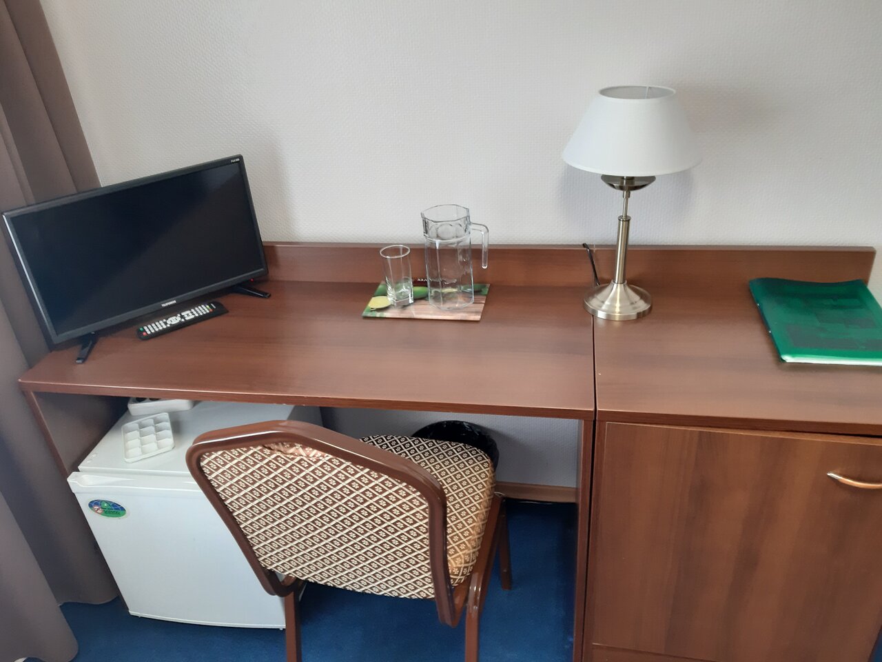 Гостиница хорошая, каждый день уборка, бельё чистое, меняют каждые три дня. Персонал вежливый. В номере есть телевизор, всегда есть чай и кофе. Чайник и кулер стоят в фое.