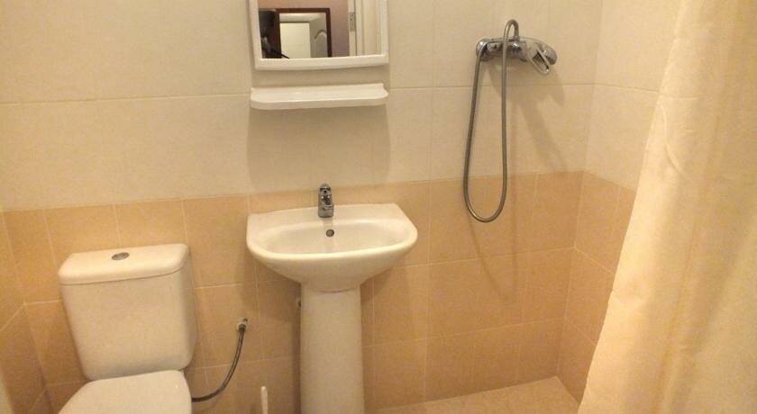 Средненькая гостиница. В номере не хватало чайника, есть Wi-Fi и ТВ. На цокольном этаже есть прекрасная и недорогая столовая.