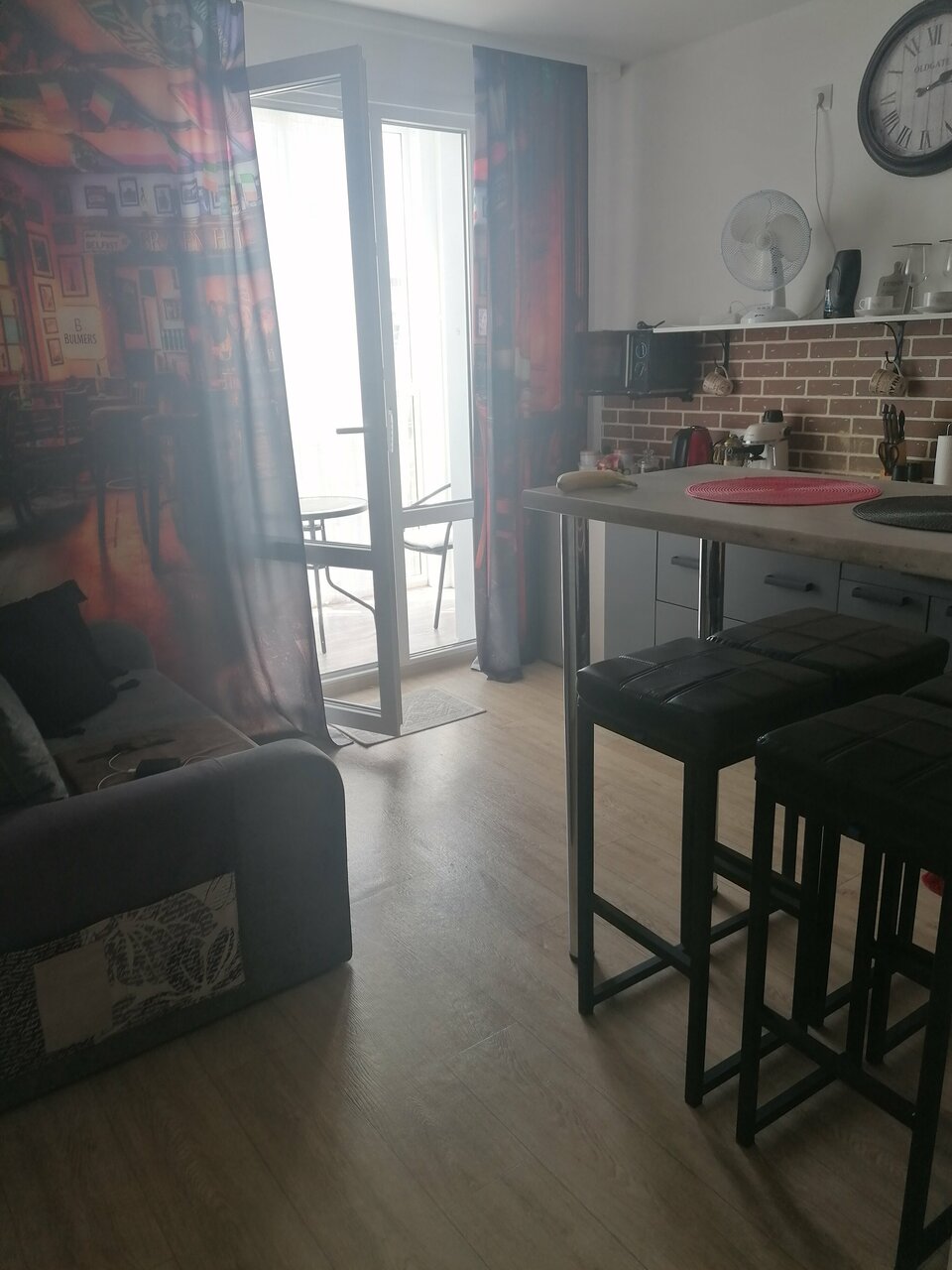 Очень чисто и аккуратно. Интересные стилистические решения. Полноценная кухонная зона. Спасибо за чай и кофе