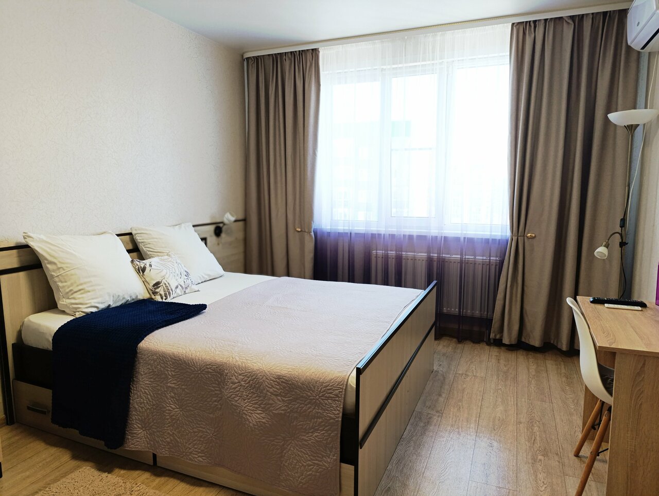 Отличное место, огромный ЖК на территории есть все необходимое, магазины, аптеки и тд. Прекрасная светлая квартира, со всеми удобствами.