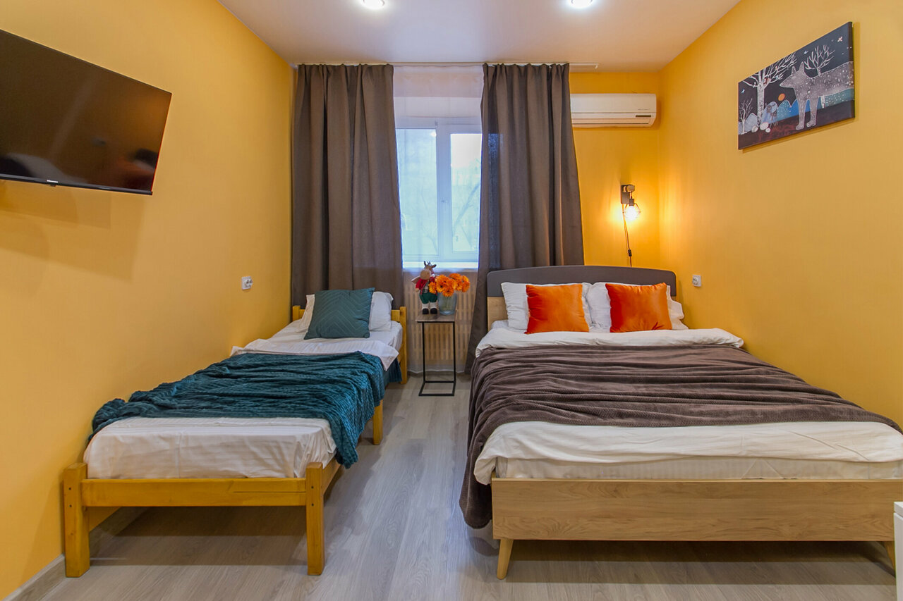 - Дополнительные удобства (кухня, стиральная машина, фен по запросу).; Уютная и чистая атмосфера.; Удобные матрасы и качественная мебель.; Тихие соседи, отсутствие шума.; Отличное место для отдыха и расслабления.