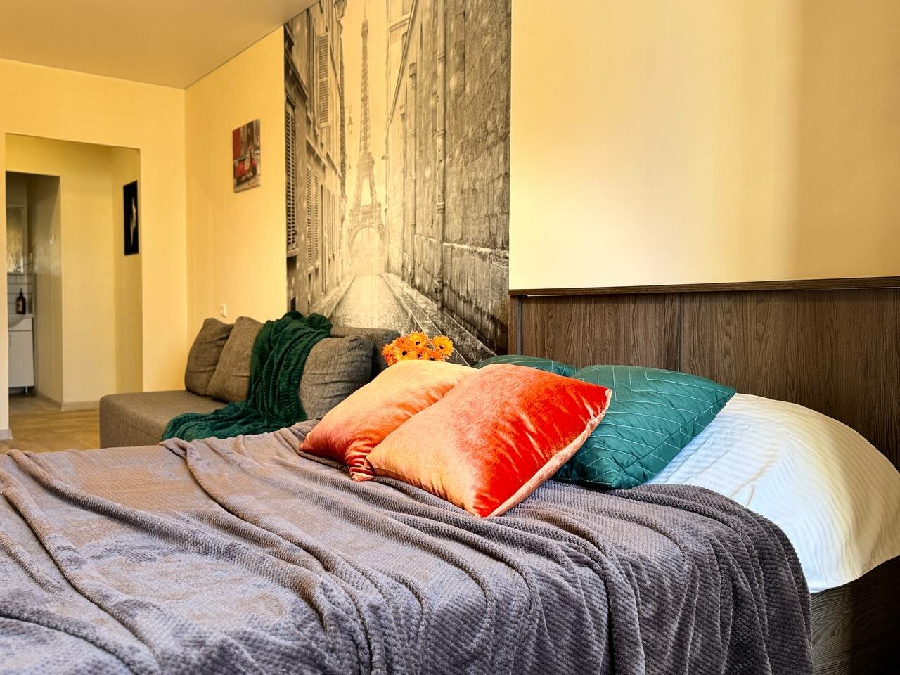 Доступны: бесплатная парковка, лифт, проживание с детьми и животными (платно), уборка. До центра — менее 5 км. Выезд до 12:00.