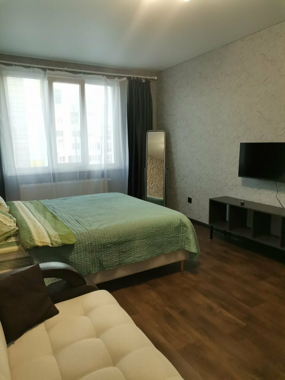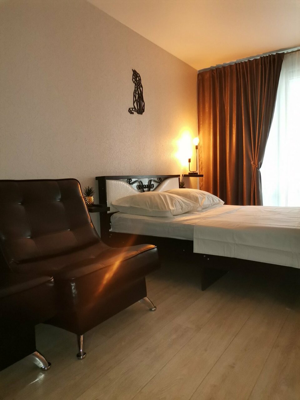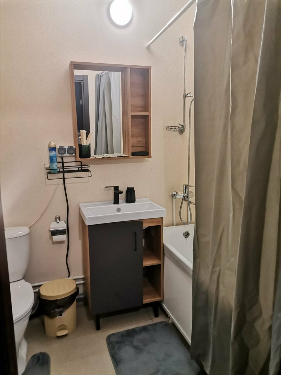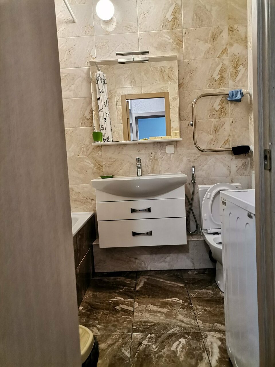Связывались и заселялись достаточно поздно. Хозяйка замечательная Фото не делали, но квартира была другая, на 1ом этаже, немного попроще. Без сплит системы, но дышалось хорошо и температура была более чем комфортная. Всё необходимое одноразовое было: зубные щеточки, тапочки ☺️ удобная и большая двуспальная кровать, чистое белье и полотенца. Удивил маленький телевизор было бы классно добавить света в ванну На кухне хороший комплект посуды и было, чем перекусить. Удобно ехать от м4. Большое спасибо! Будем обращаться ещё ❤️