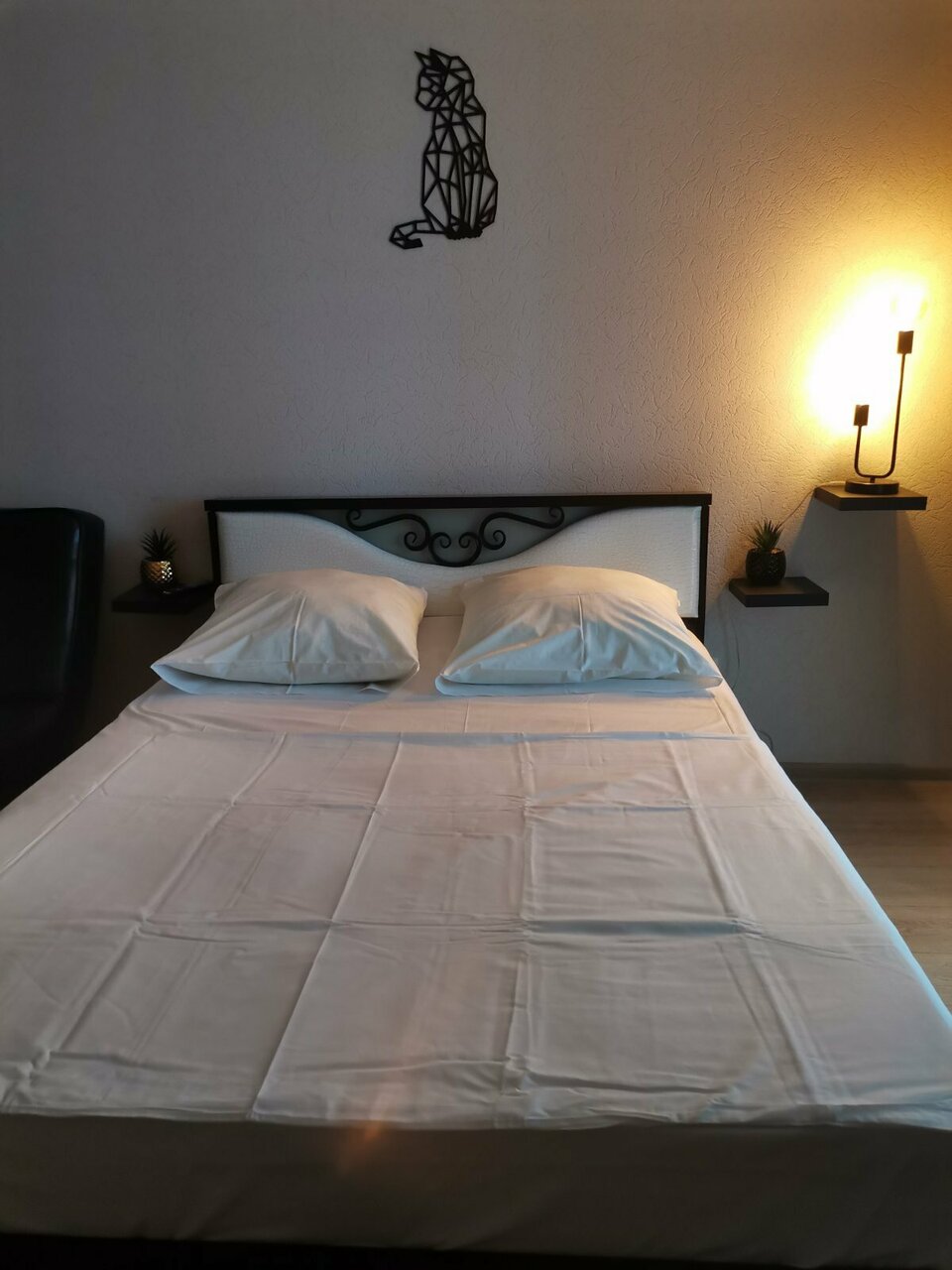 - Удобная двуспальная кровать, чистое бельё и полотенца.