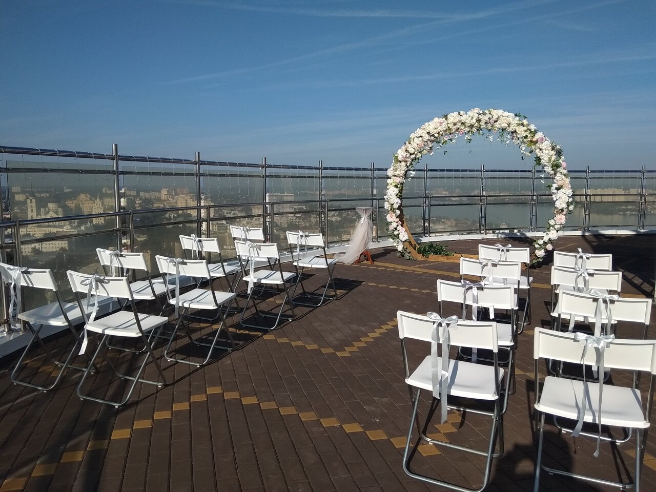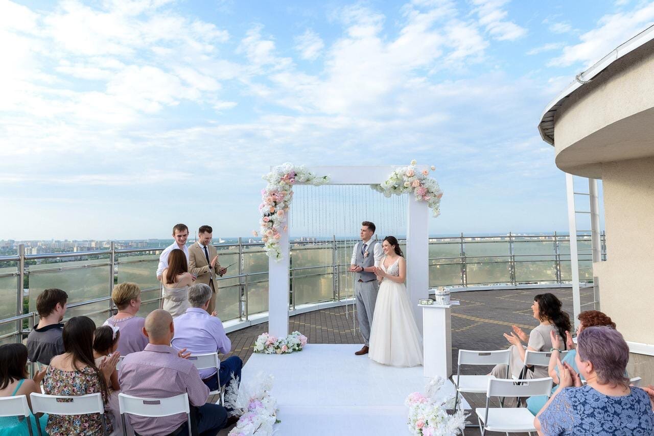 Отмечали камерную свадьбу в банкетном пространстве Небо. Все прошло замечательно! Вид на город, просто потрясающий. Особенно на закате. Еда очень вкусная. Порции большие. Свадьбу делали с упором на фуршет и под открытым небом, вообще не пожалели. Это был новый интересный формат, который запомнился всем гостям. Адекватный, доброжелательный и вежливый персонал. Все было четко и в процессе обсуждения, и на самой свадьбе.