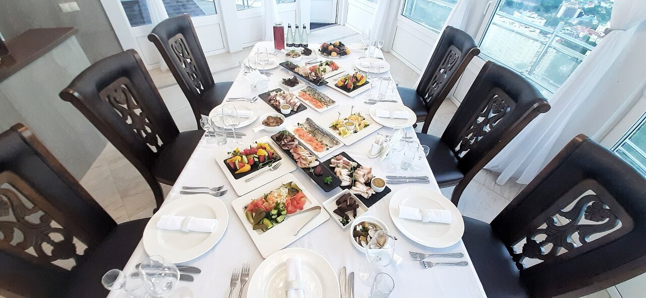 - Удачный формат фуршета под открытым небом.; Восхитительный набор местных сыров.; Адекватный, доброжелательный и вежливый персонал.; Удобное расположение в центре города.; Потрясающий вид на город (особенно на закате).