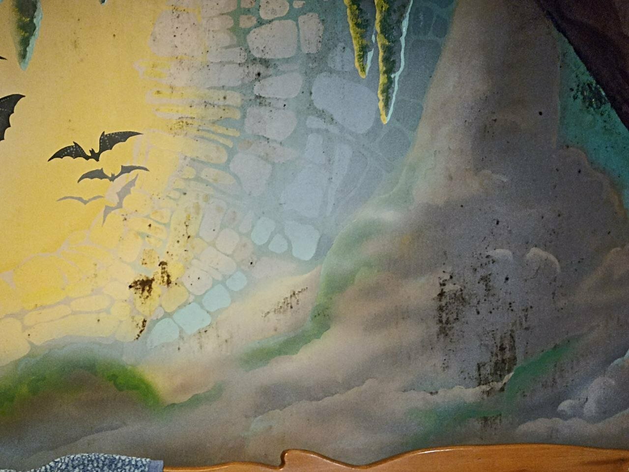 - Плохая вентиляция, плесень на стенах, паутина, темно.