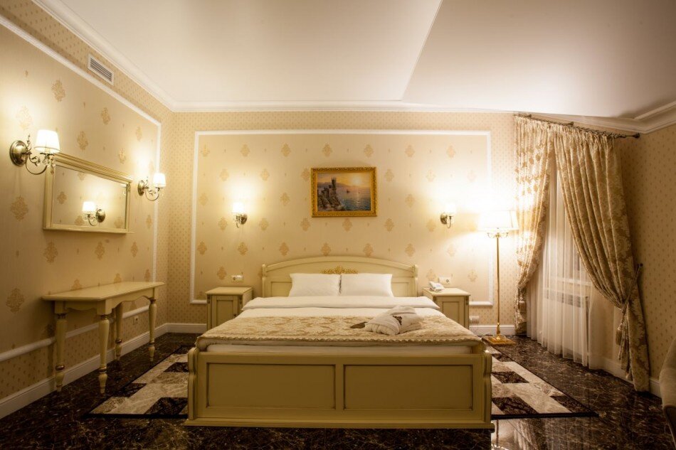 - Великолепный номер Люкс, халаты, тапочки, принадлежности для душа, сейф.