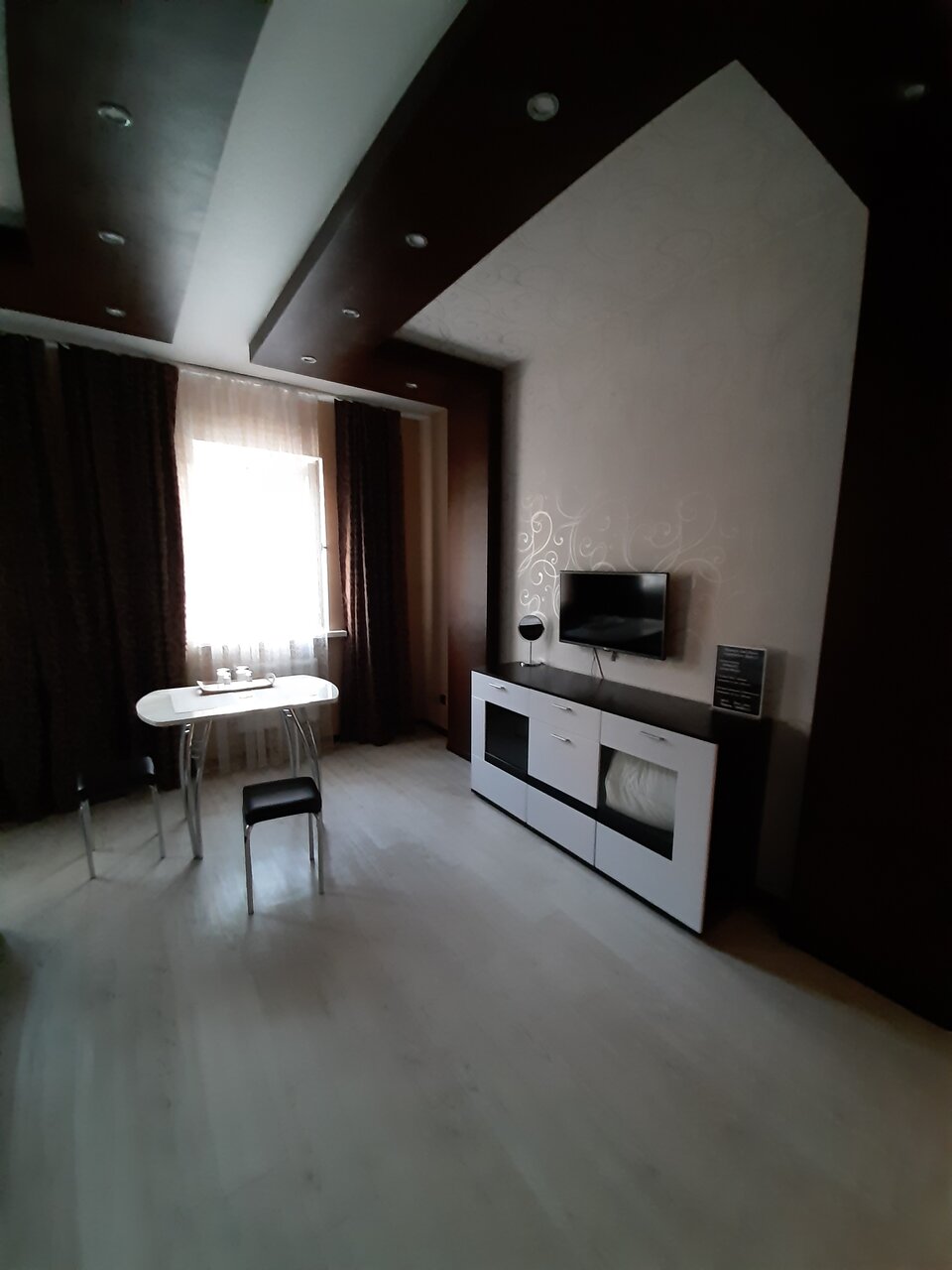 Соответсвует всем фото. Чисто, тихо, парковка на территории, приятные хозяева. На этаже холодильник с морозилкой, кулер, чайник. В 5 минутах езды есть неплохое кафе.