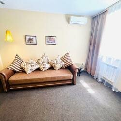 - Просторные номера (широкие кровати, диван)