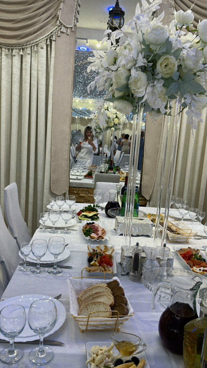 19 июля были на свадьбе у друзей.Красивый зал-это ничего не сказать.Мы попали действительно в Королевский сказочный зал.Всё на .Разнообразие блюд и подача были превосходны.Официанты работали слаженно ,были очень внимательны.Подача шашлыка-это было целое завораживающее костюмированное представление. Отдельно про гостиницу.В номере чисто,встретили приветливо,обслуживающий персонал на любые просьбы тут же откликались. Кстати ещё хочу отметить разнообразный завтрак утром☝ Рекомендуем Зал n1.Он действительно на 1 месте