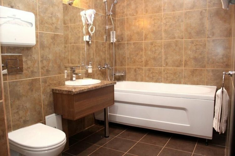 Владелец этой гостиницы жадничеет на ремонте, ванная комната вся разваливается, плитка гляди на голову упадёт, убирают в номере редко, кормят вкусно