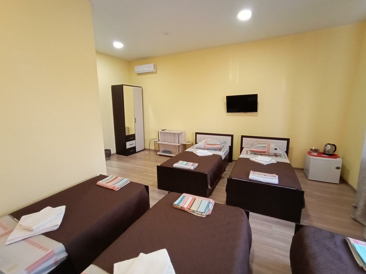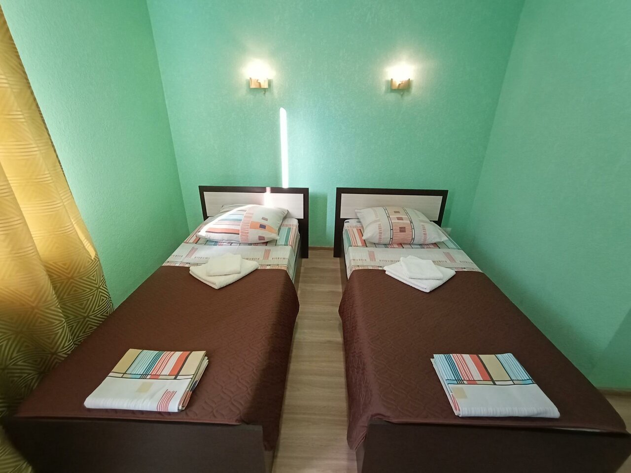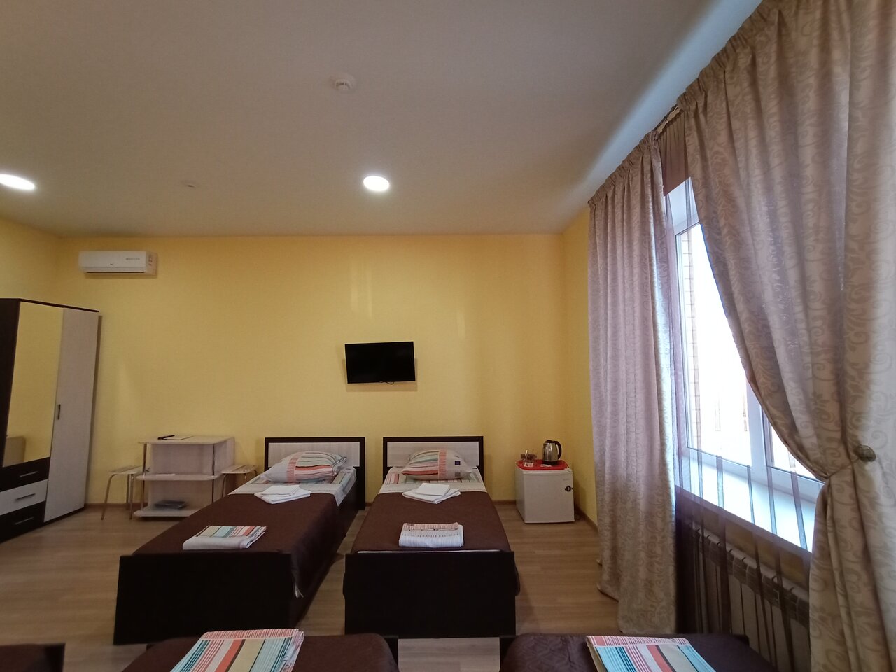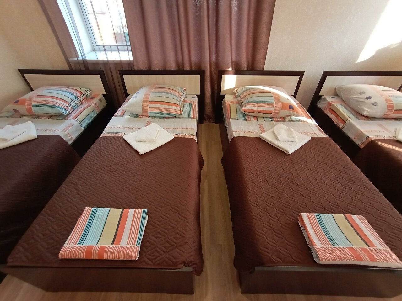 Отдыхали с 10.08-11.08 и возвращались обратно с 22.08-23.08 тоже останавливались у них. 3х местный номер 2400 рубл с завтраком, очерь бюджетно, внутри чисто, нейтральная пастельных цветов расцветка номера, белое пастельное белье, есть холодильник и чайник в номере. Напротив магазин пятерочка, можно купить что-то поесть, или мы заказывали в Деливери, ресторан ‘Карина’ очень вкусная еда, манты, пюре, котлета, окрошка, суп с красной рыбой, и селёдку под шубой, все было потрясающее горячее и доставили быстро, и меню у них очень разнообразное.