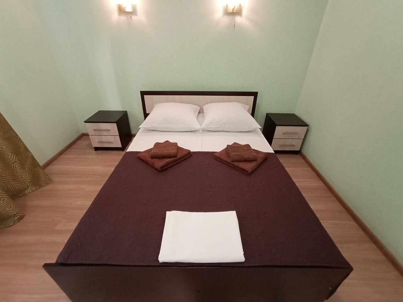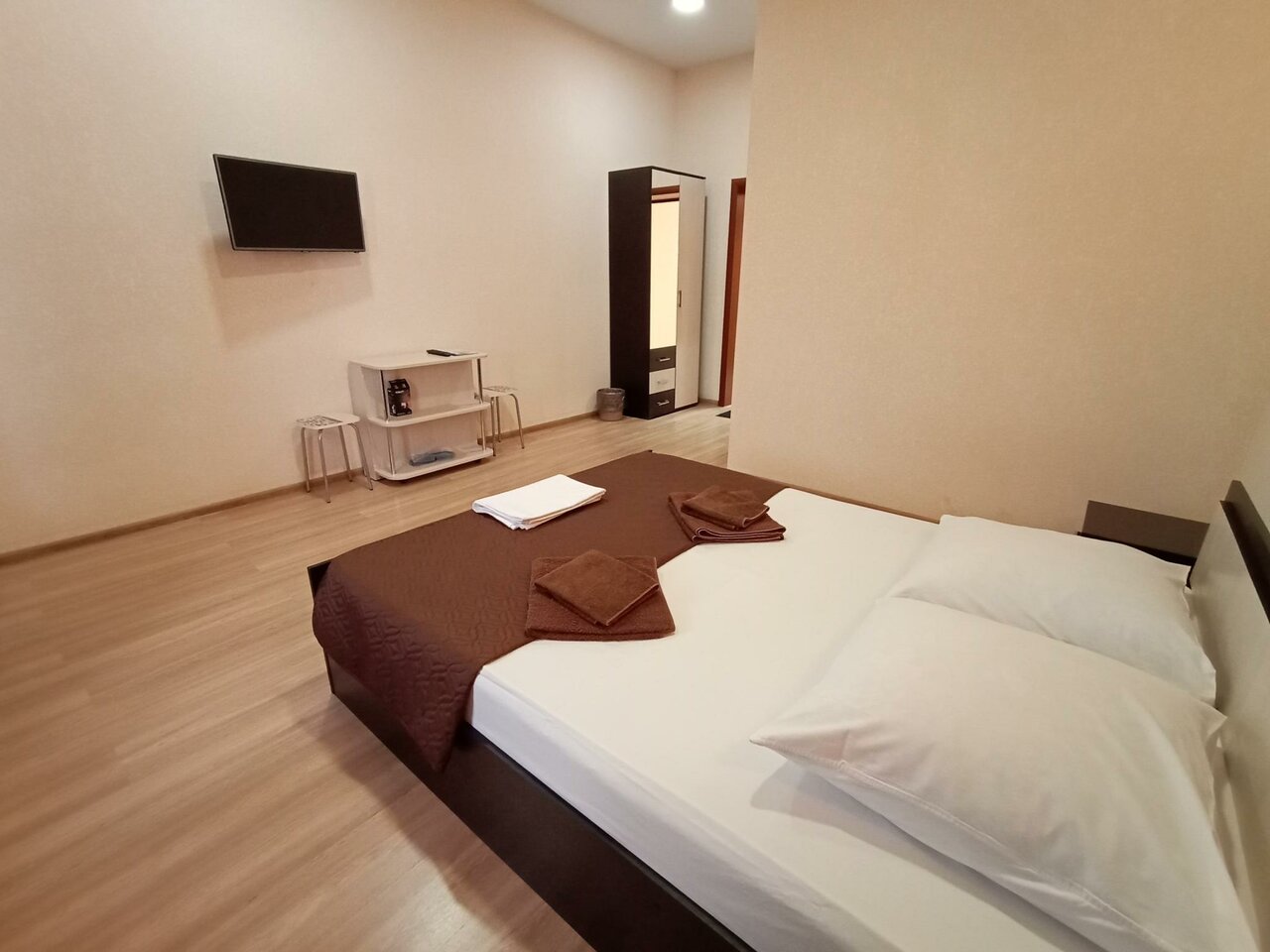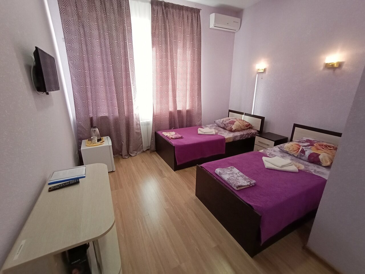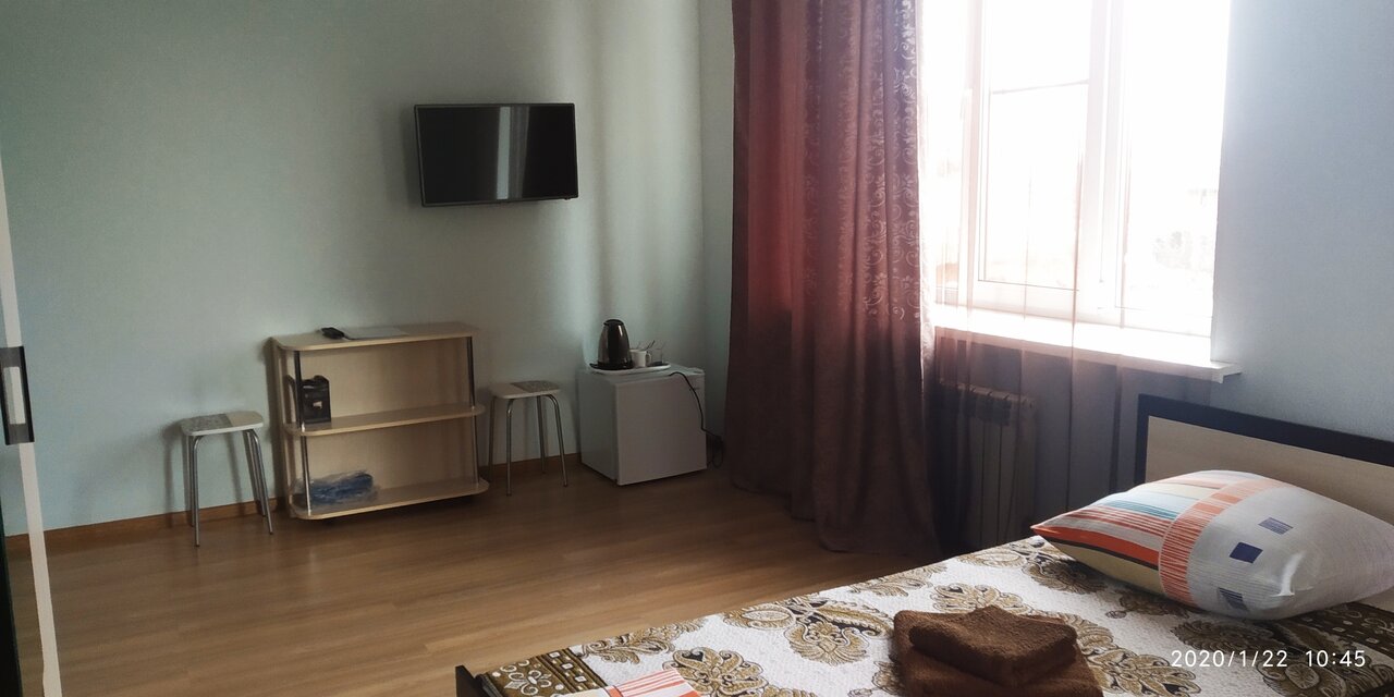 Отдыхали с 10.08-11.08 и возвращались обратно с 22.08-23.08 тоже останавливались у них. 3х местный номер 2400 рубл с завтраком, очерь бюджетно, внутри чисто, нейтральная пастельных цветов расцветка номера, белое пастельное белье, есть холодильник и чайник в номере. Напротив магазин пятерочка, можно купить что-то поесть, или мы заказывали в Деливери, ресторан ‘Карина’ очень вкусная еда, манты, пюре, котлета, окрошка, суп с красной рыбой, и селёдку под шубой, все было потрясающее горячее и доставили быстро, и меню у них очень разнообразное.