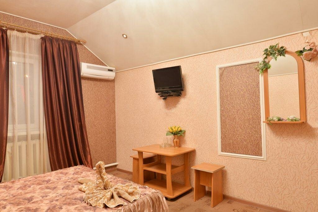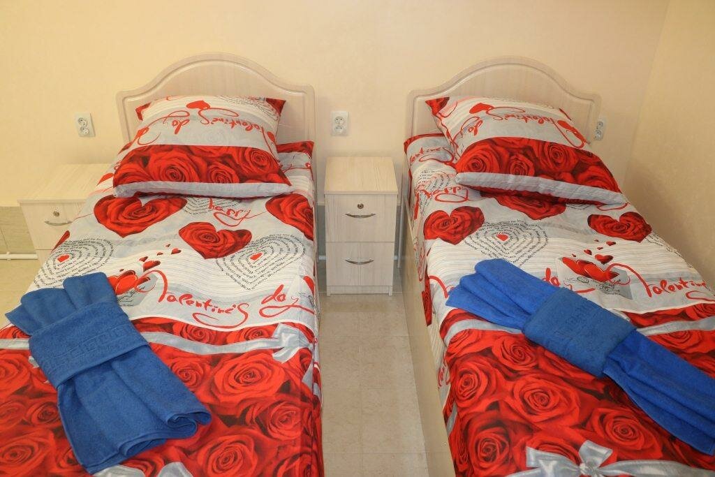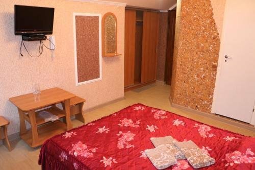 Гостиница на самом деле не соответствует ожиданиям!Сервис извините за выражение «*** полный».В туалете огромнейший паук, не убрано нигде,везде паутина,очень холодно.На фото вам врут,нет в комнатах туалета и ванной!все общее с другими жильцами!а в номере стандарт на двоих вас ждёт сюрприз.Вместо окна там дверь! Ужасное место,не стоит своих денег,вот того честно говорю.Вариант есть хотя бы подключить холодильник? А может вариант есть хотя бы на кухню приобрести тарелки ?вилки?а может утюг? Это не гостиница !а чей то переделанный дом! Сложилось ощущение что мы жили в летней кухне! Что на самом деле реально факт! Номер состоял из кровати и прикрученного типо стола,пол — это кафель! Честно ,ужаснее номера и гостиницы я не видела! Огромная просьба,не едьте туда!Вокруг обман! Но! большое спасибо приветливому администратору!Администратор — единственное ,что принесло радость в столь ужасной гостинице!всем по розе!