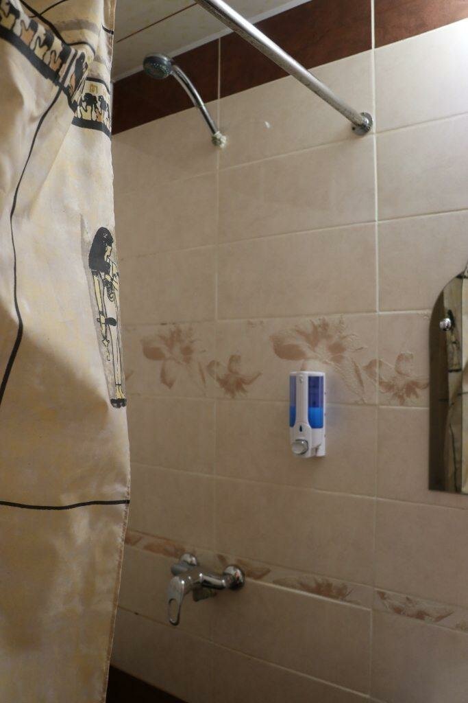 Белье в пятнах жира, в ванной плесень хлопьями висит. Весь пол в туалете после купания мокрый, потому как вода из душа течёт четко в середину туалета/душевой, и поход в туалет -это мокрые ноги. Это компенсируется, услужливыми администраторами, исполняющими ваши просьбы