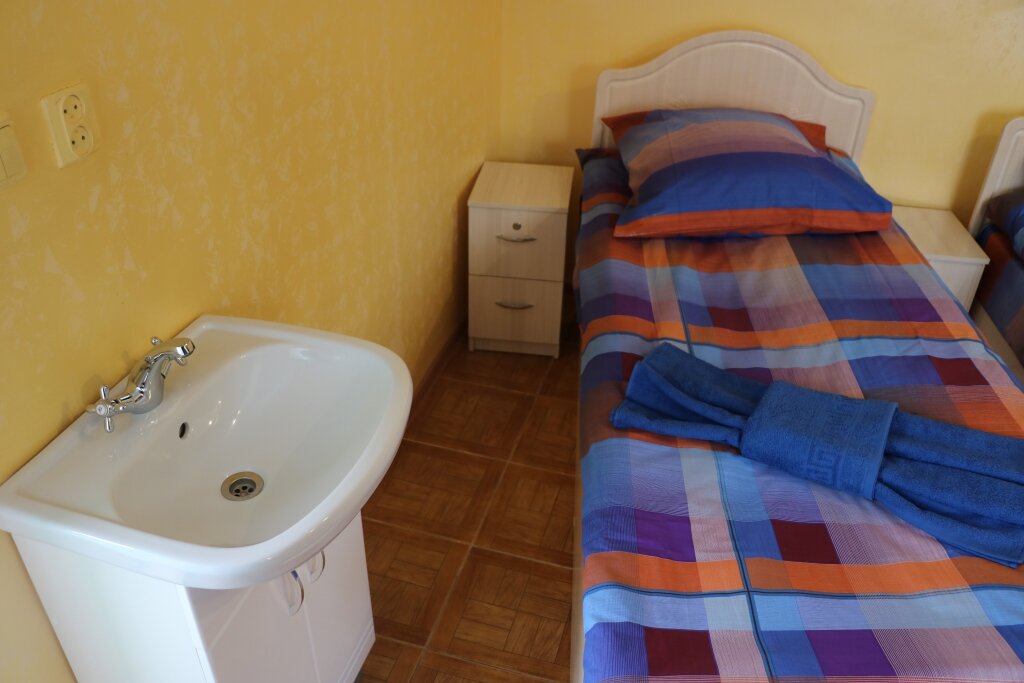 Ночевали по пути на юг. Маленькая комната, но есть мини холодильник. Общий туалет, душ. Есть мини парковка на которую смотрят камеры. Минус — не просохшее постельное белье.
