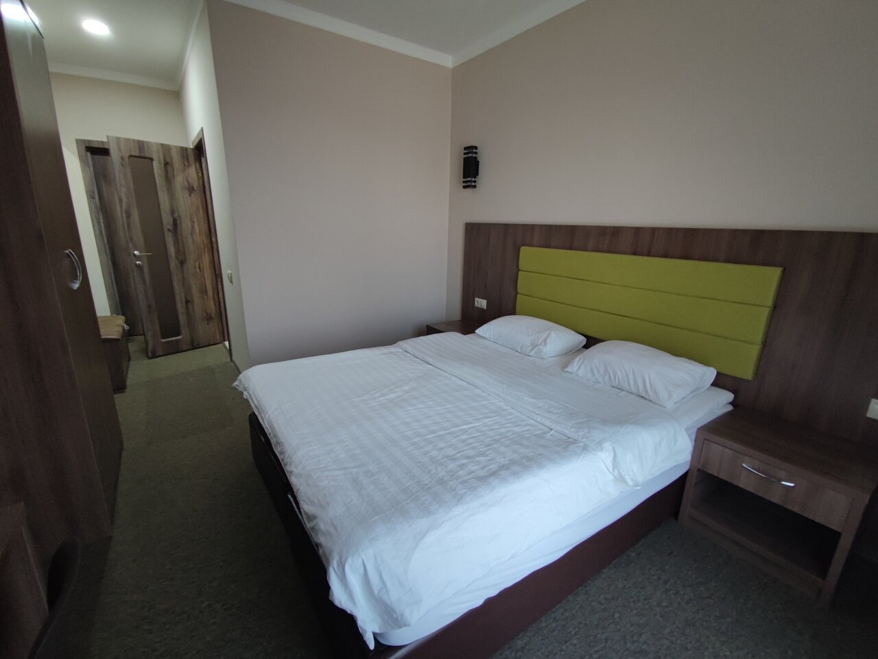Вьехали в отель чтобы передохнуть перед дальней дорогой . Но это не получилось ! В подвале сауна где праздновали день рождения. Музыка играла так сильно и пели песни что не риально было заснуть ! Подошли к администратуру и попросили чтобы потише вели себя но это не помогло. Нам сказали что в 2 часа все закончится а в итоге закончилось в 4 ! На завтрак дали самую дешевую булавку. Больше сюда не когда не поеду и ни кому не соведую