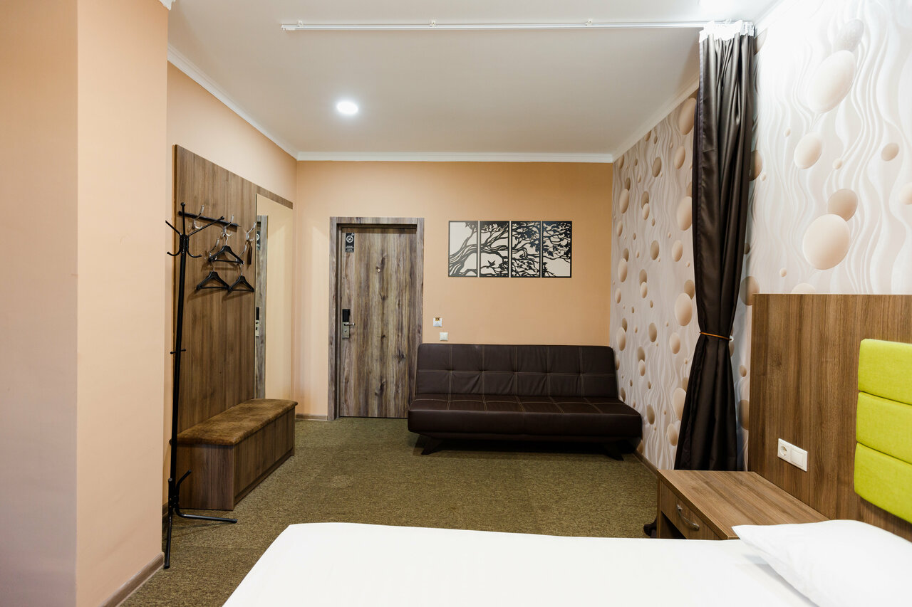 Отличная небольшая уютная гостиница, ремонт свежий, красивый. Кровать большая, а белье всегда было чистое, в ванной убираются также хорошо. Администратор классный — все рассказала дружелюбно и показала, быстрое заселение. Отдельный респект за завтрак — очень вкусный и плотный, за свою цену — просто ТОП