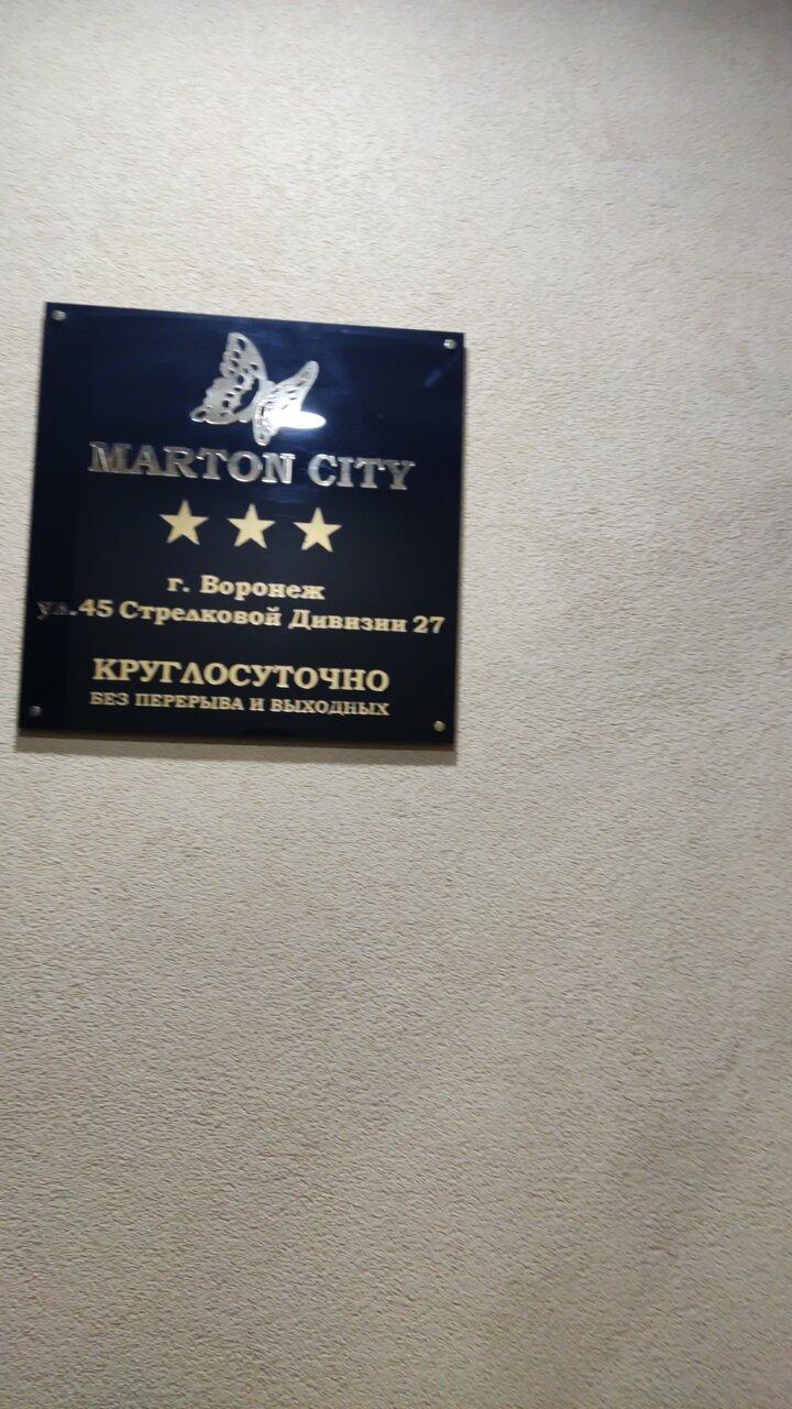 Marton City — трёхзвёздочная гостиница в Воронеже, расположенная по адресу: ул. 45-й Стрелковой Дивизии, 27. Работает круглосуточно, предлагает комфортные номера с кондиционером, санузлом, холодильником, мини-баром, телевизором и бесплатным Wi-Fi.