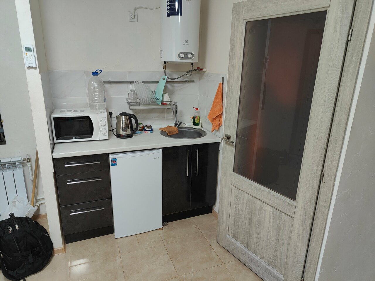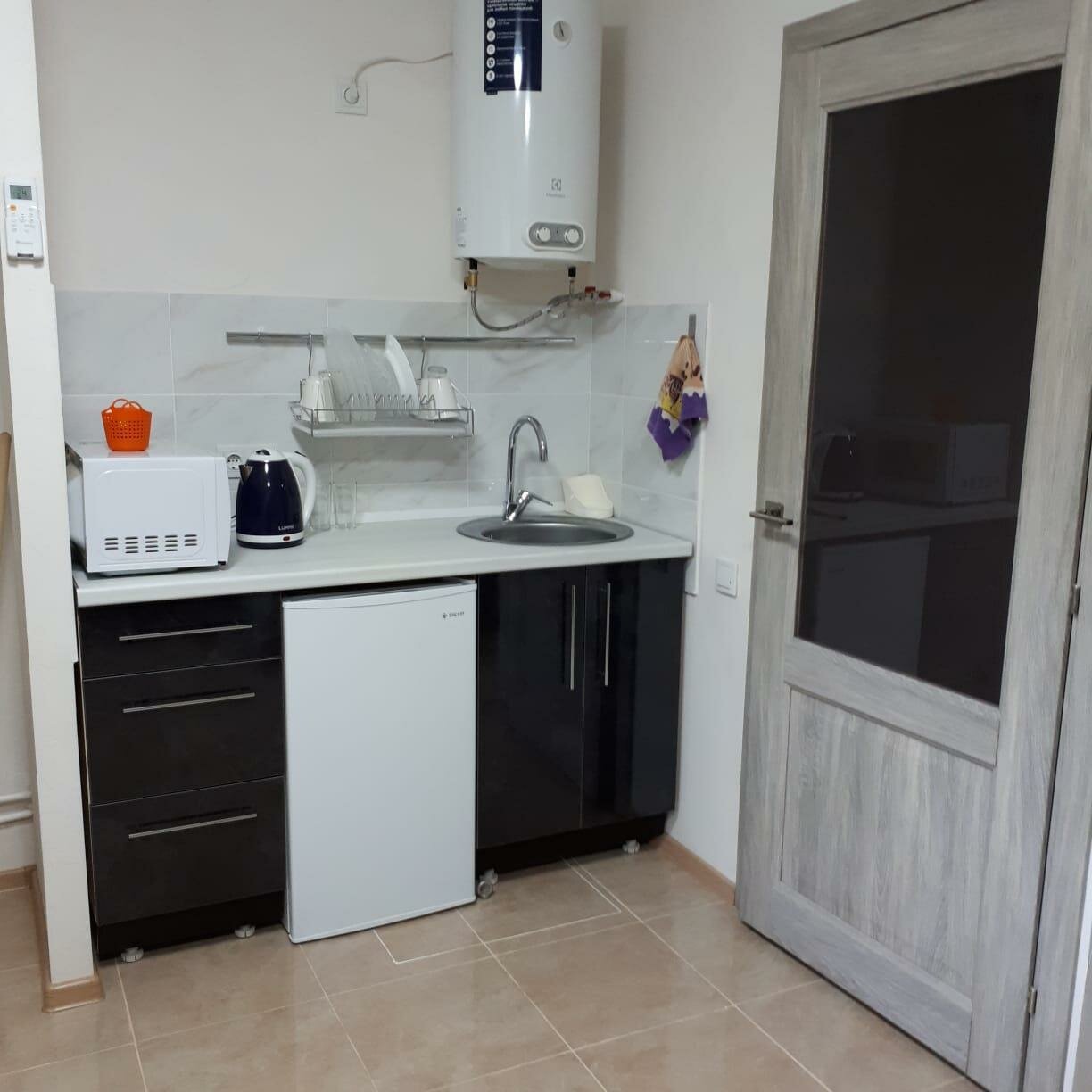 - Наличие кухонной техники (плита, микроволновка, чайник, посуда).