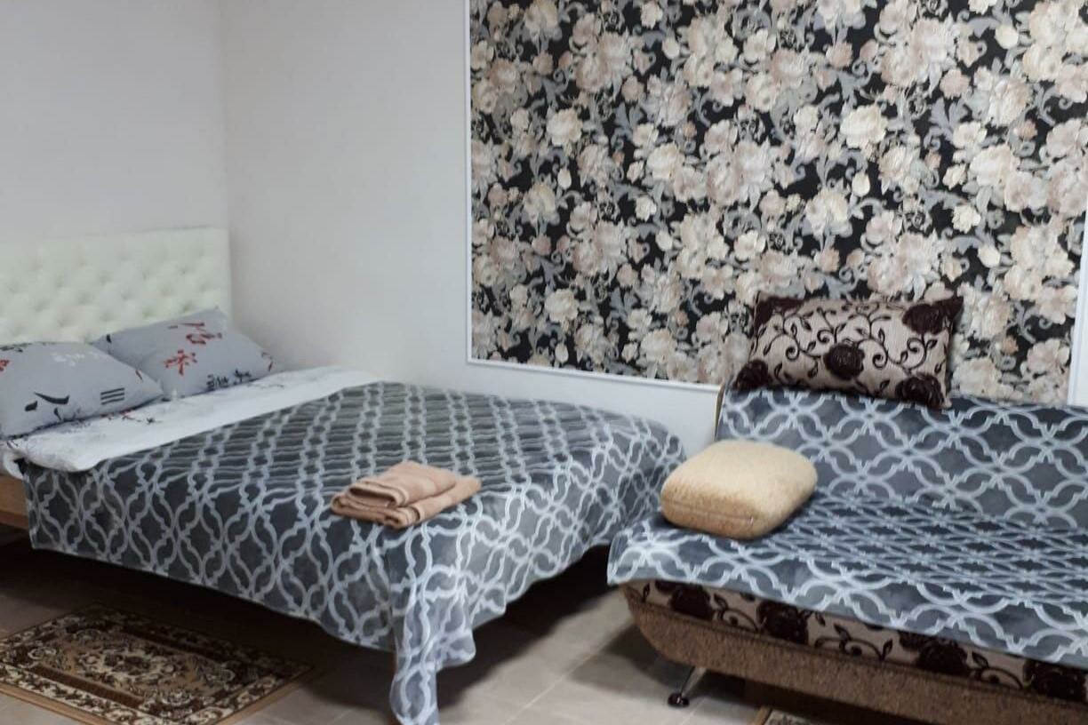 Отличный вариант для тех, кто возвращается с моря! Двуспальная кровать, раскладной диван, душ, телевизор с мультиками. Во дворе беседка с столом.