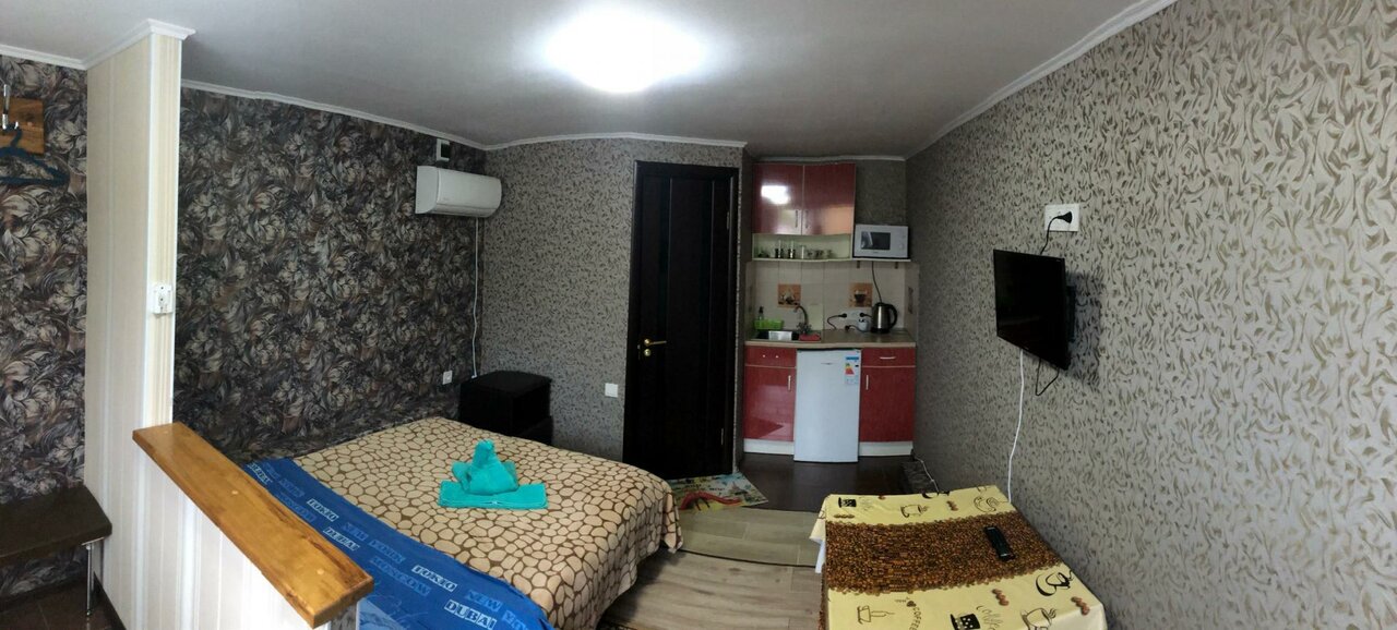 Отличное место! Останавливались по пути на море и обратно. Посчастливилось пожить в двух разных номерах. Всё отлично! В каждом номере есть комплект посуды, ложки, вилки, тарелки, чашки, кастрюли и т.д. есть мини кухня с электроплиткой, микроволновой, мойкой и холодильником. Отличные кровати. Есть телевизор и кондиционер. Во дворе под деревом грецкого ореха есть мануальная зона. При желании можно пожарить мясо на углях и посидеть отдохнуть.