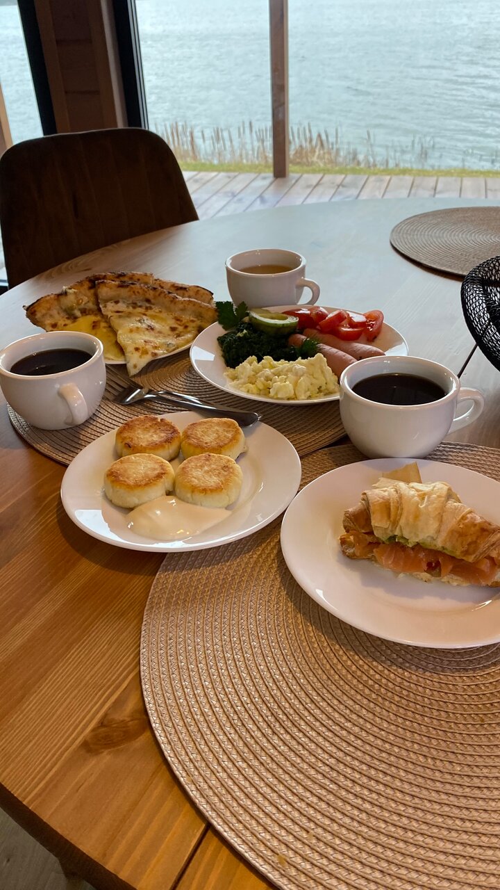 Домики классные, вид вообще шикарен, завтраки в принципе как везде в подобных местах, но баня просто кошмар! Находится на территории футбольного поля, отвратительная, никому не рекомендую туда ходить, вот только поэтому 4 звезды