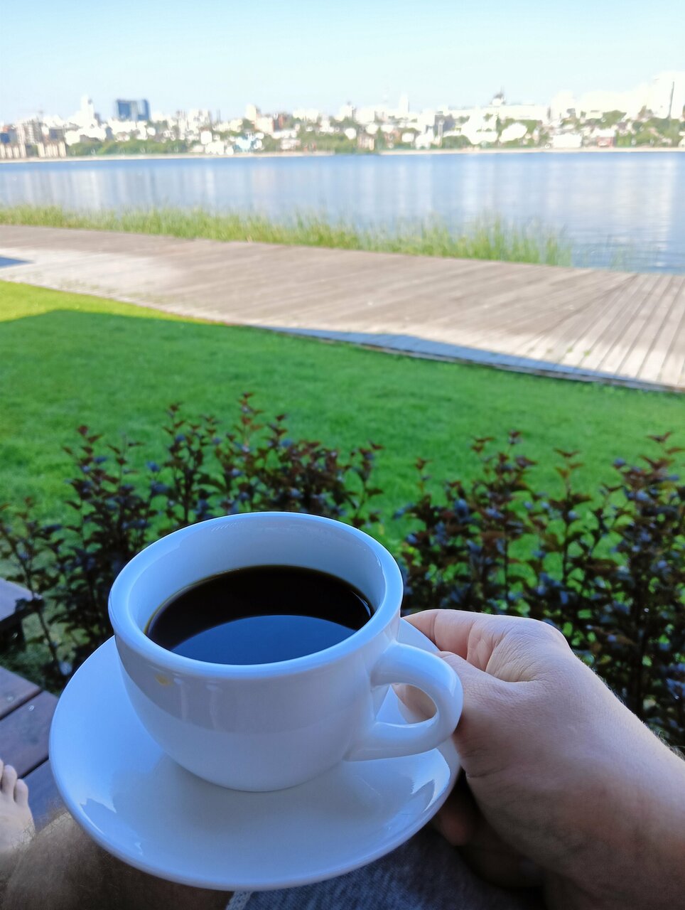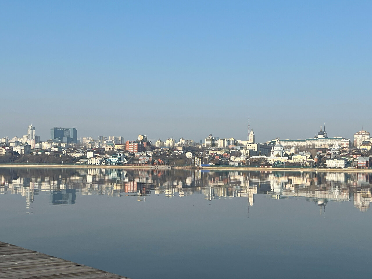 - Красивый вид на водохранилище и город.