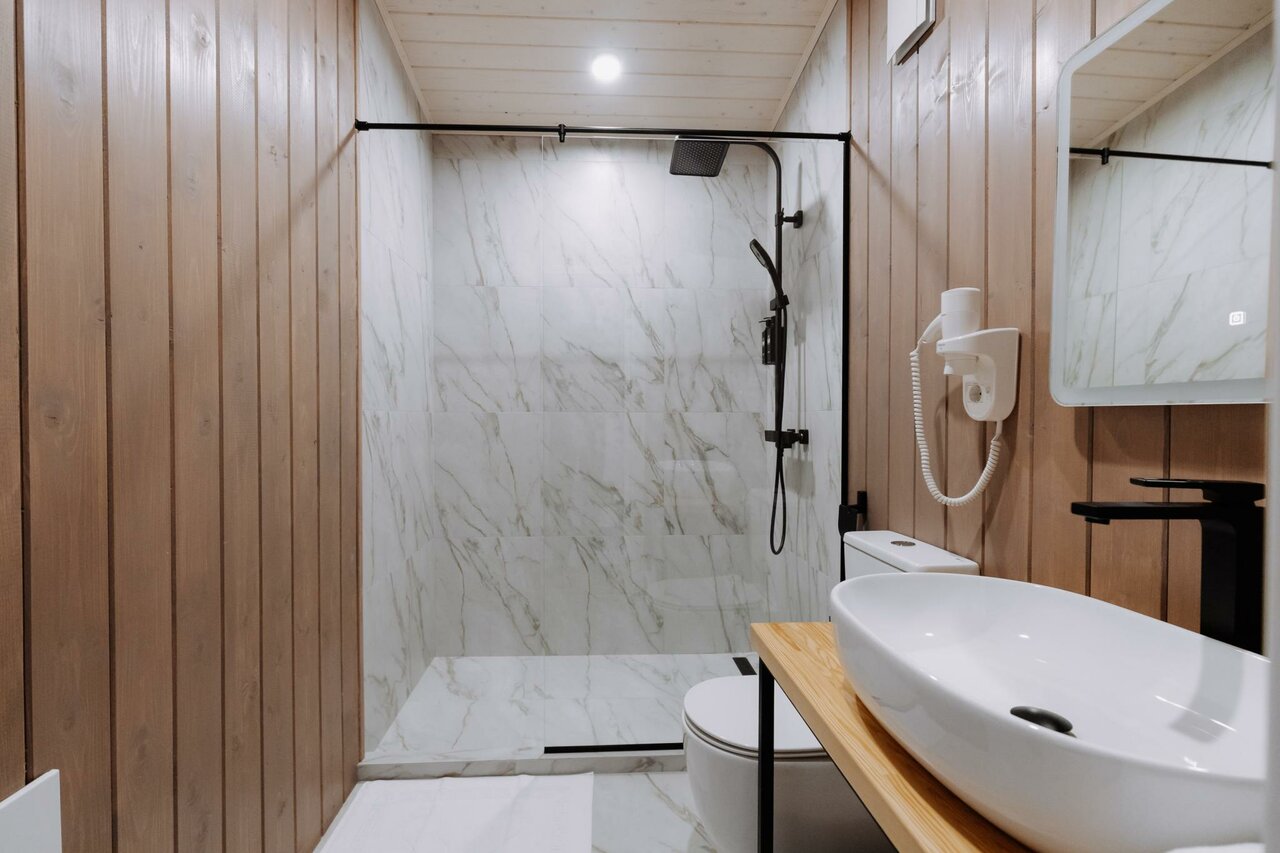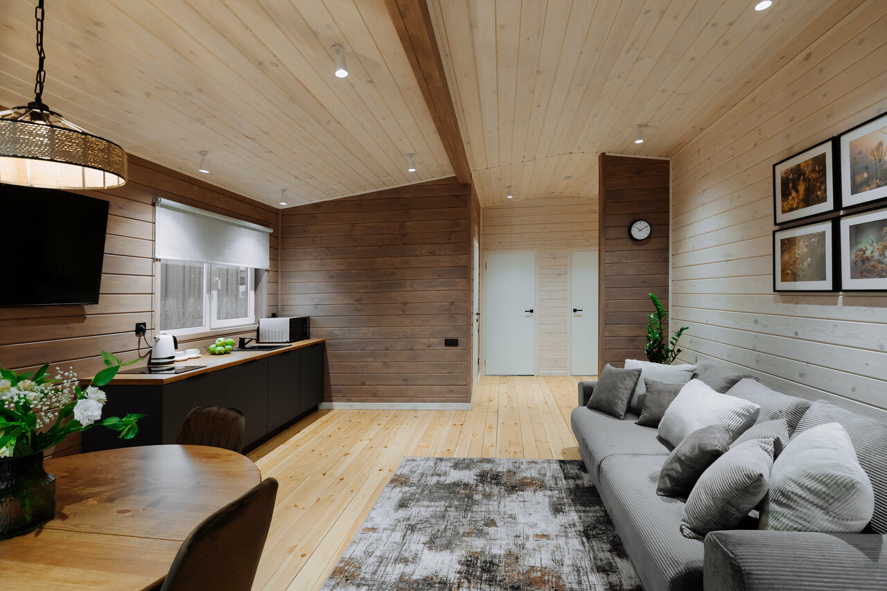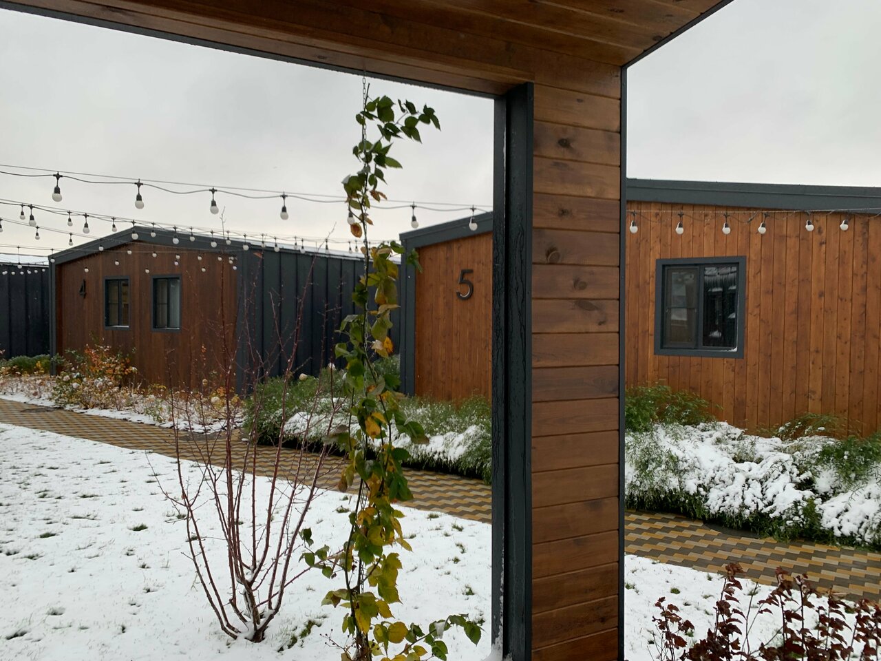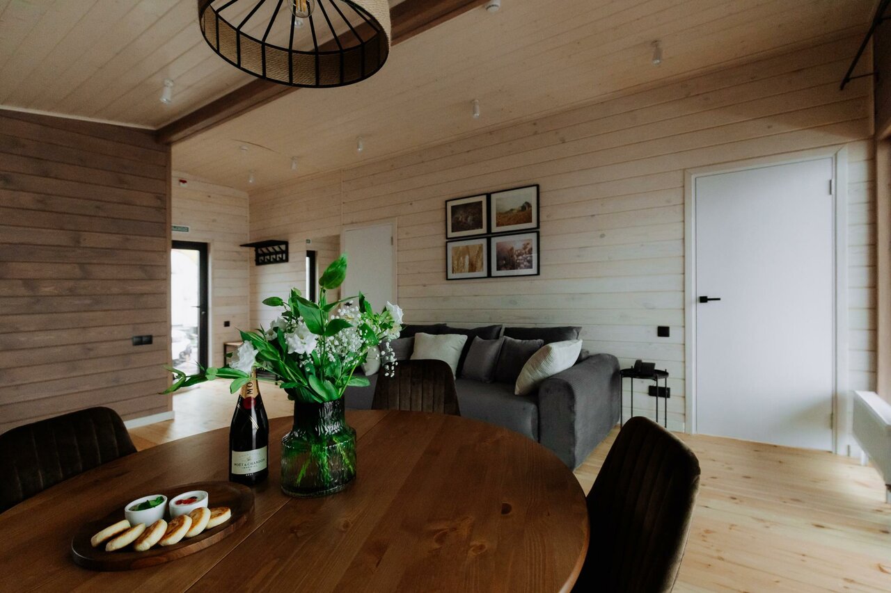 Задумка классная, а вот реализация.. по-воронежски. Фото как ожидание /реальность. Места очень мало между домиками. Вы соседи по-настоящему. Но это ладно. Интерьер классный, стильно. Удивили ползающие на кухне и в уборной роем муравьи… в марте!!! Грязный пол тоже удивил. Ну и вишенка на торте- оставленный предыдущими жильцами использованный бритвенный станок в душевой… такое себе за 14к в сутки. Приветственное теплое игристое- класс, но бокалы можно бы и предоставить сразу. Вазу для цветов мы ждали минут 40, хотя с ресепшен дверь в дверь. Не хватает кофе машины или хотя бы кофеварки. Или растворимого кофе… в общем не первый опыт аренды подобных домиков. Но такое впервые