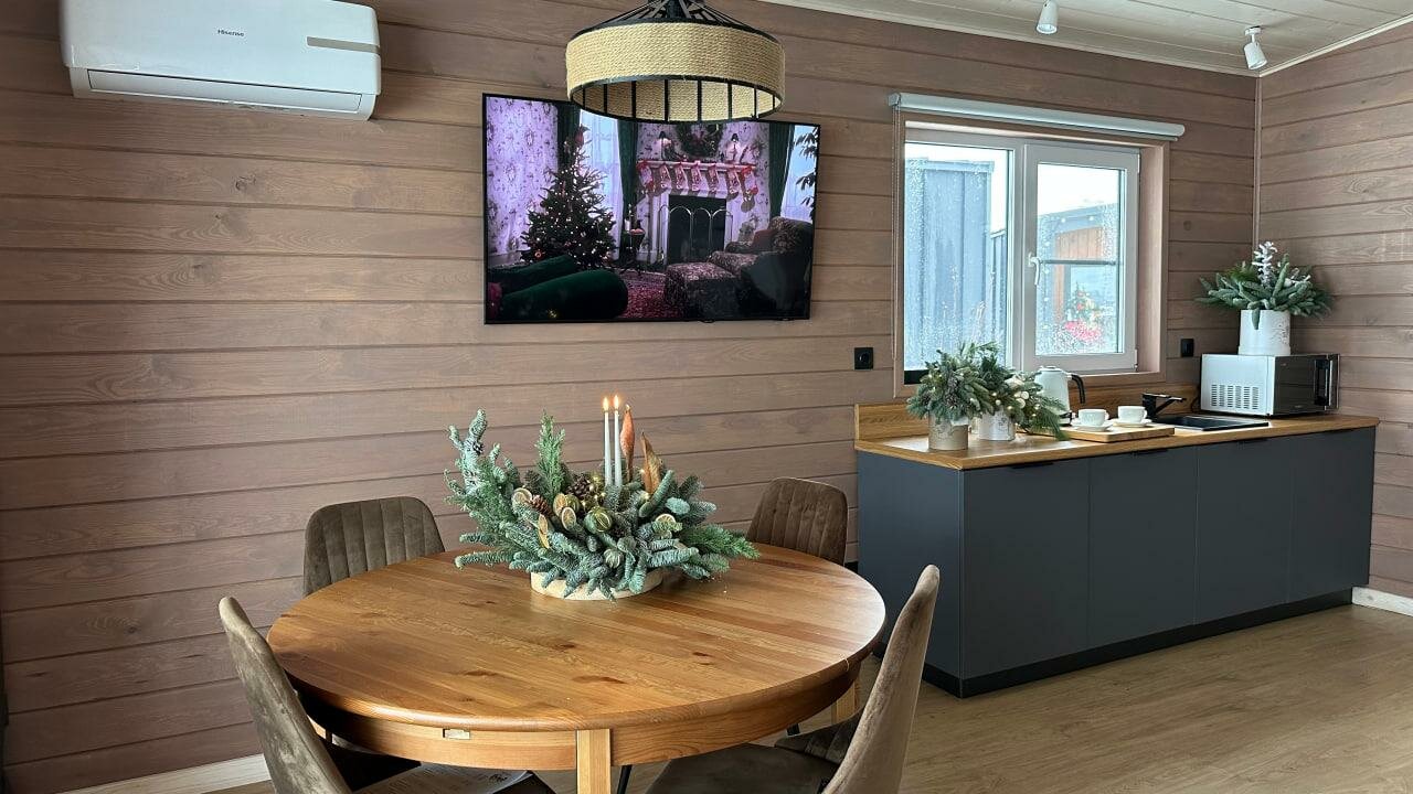 Очень чистый теплый номер, прекрасная территория, с подогреваемым бассейном, есть сауна. Территория очень понравилась, в номере есть все для жизни. Мы обязательно вернемся еще