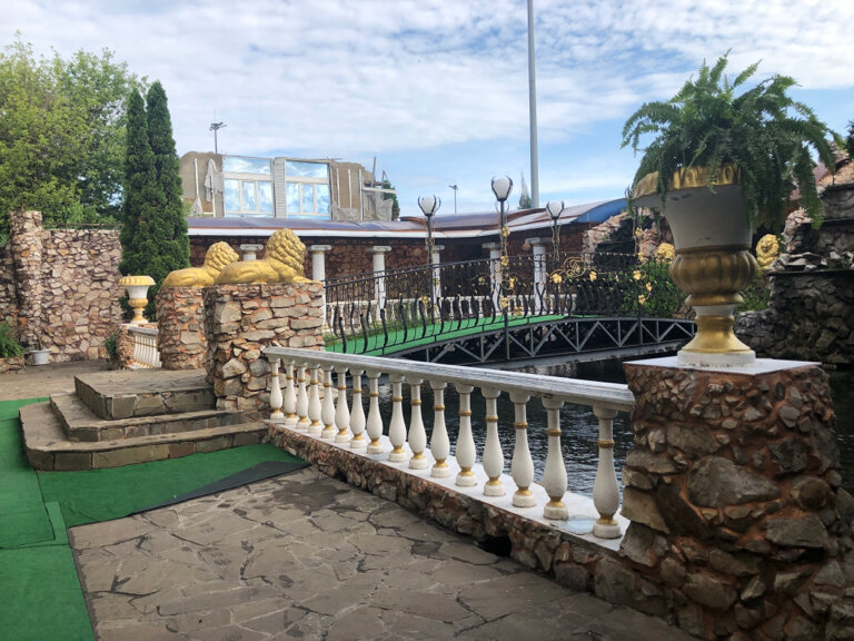 Атмосфера ресторана и кафе напоминает конец 90х начало 2000х годов. Крайне не удобное местоположение и подъезд к заведению. Не опрятные официанты, еда из: ‘столовой Политеха’. Двор недостроен, много дизайнерских не доработанных моментов, если конечно дизайнер вообще был. Порадовал водоем с Карпами! Больше положительных эмоций не испытал. Но как говорится на вкус и цвет…