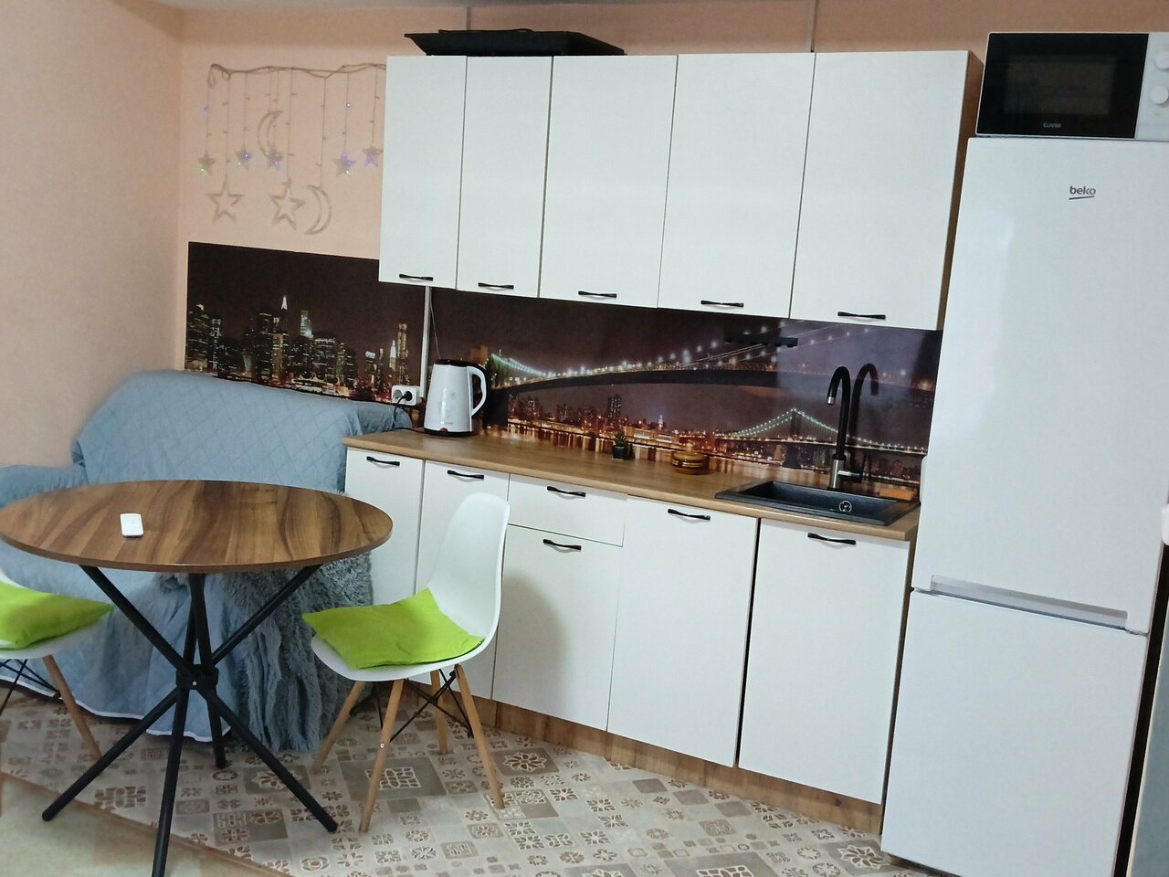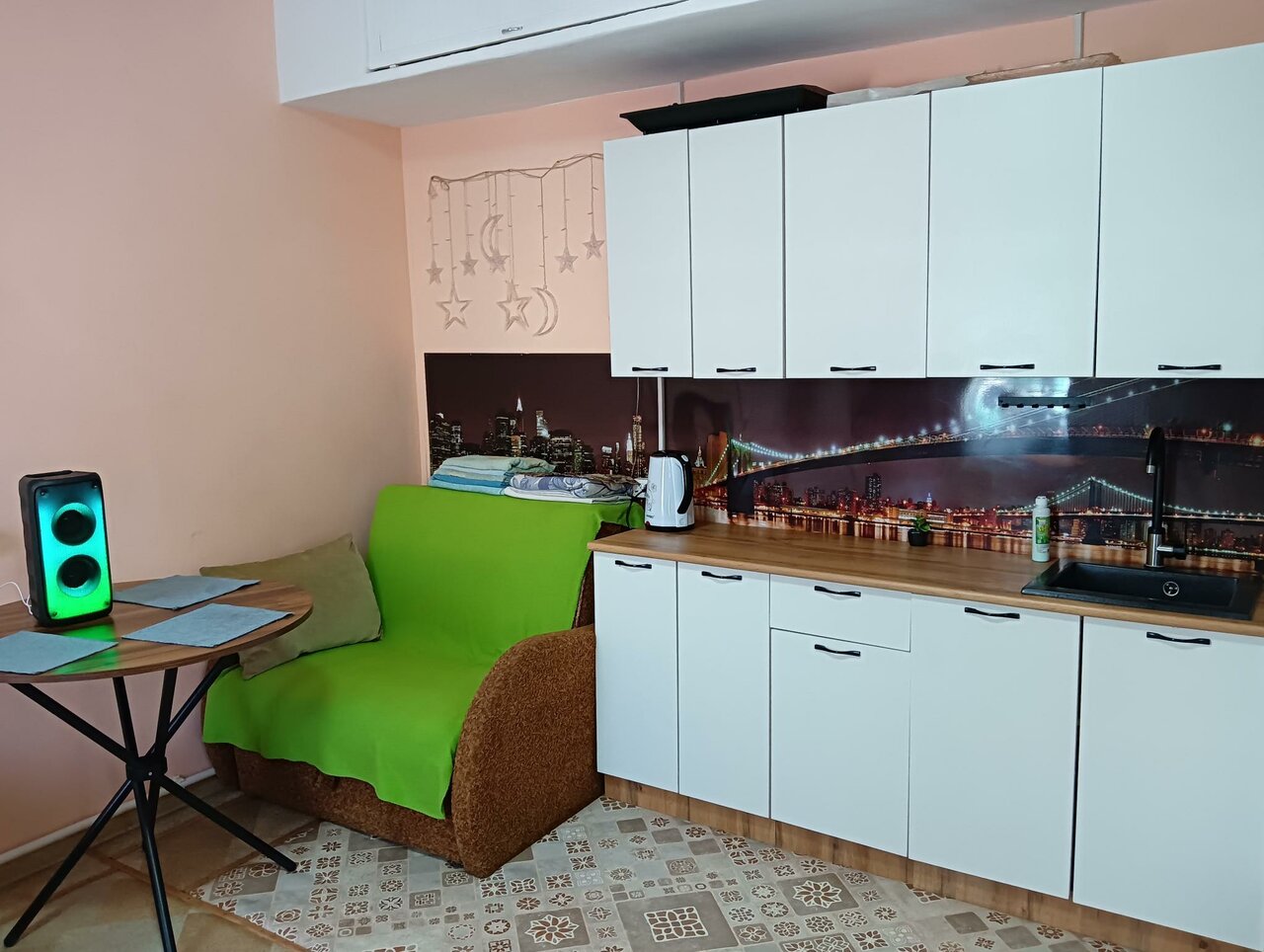 Уютный номер с кухней и посудой, телевизор Smart, WI-FI 5G, санузел в номере, кондиционерСтирка, сушка и гладильная доска, утюг, фен