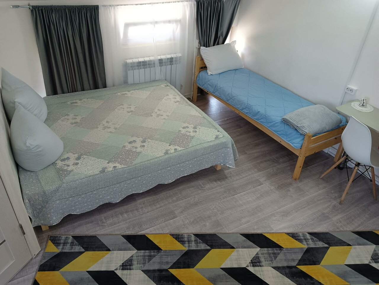 Это не гостиница. Это просто частный дом, в котором сдаются комнаты с удобствами. Ощущение, что ты приехал к каким-то незнакомым людям в гости, и они просто тебе свою комнату уступили. Везде вещи хозяйские, игрушки детские, посуда на кухне старая, да и той мало. А еще не скажу что чисто. Когда въезжаешь, а на столе лежит грязная тряпка и в ящике чей-то недопитый чай в чашке, приятного мало. Диван в «номере» на 1 этаже очень неудобный, по форме как буква V, неизбежно скатываешься в середину. И еще ты как в аквариуме. Стеклянные двери и окна выходят во двор так, приходится шторы закрывать все время. Хотя хозяйка очень радушная, старается, но понимания, что такое гостиничный бизнес и как он строится у неё явно нет. Поэтому только за старание не 2*.