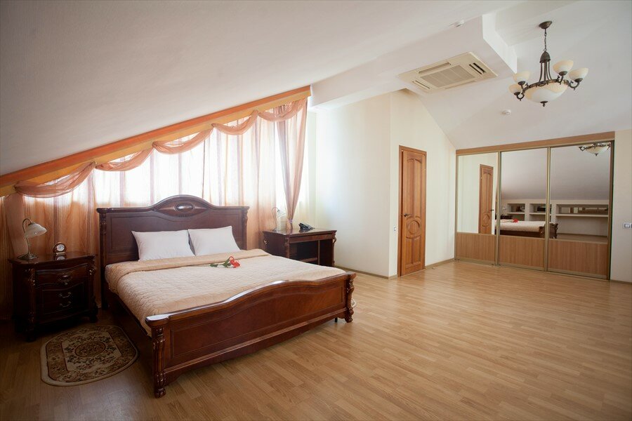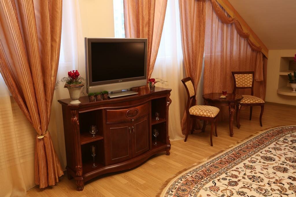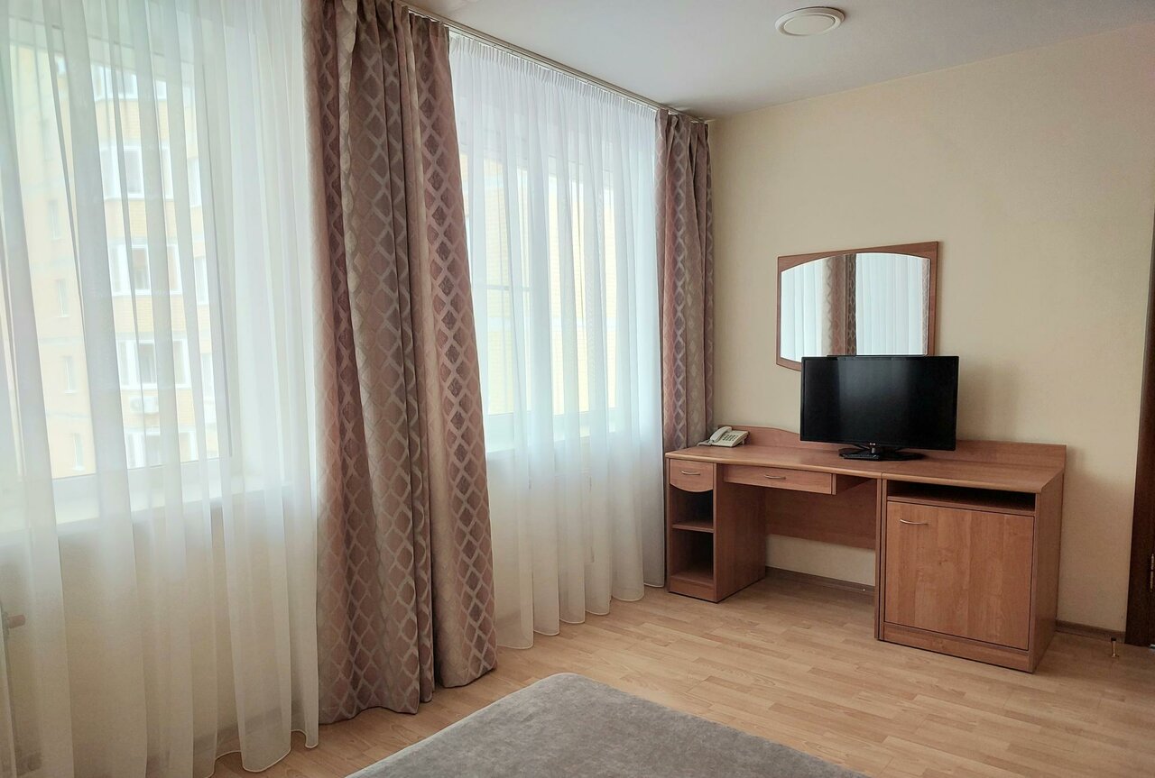 Гостиница в целом, хорошая! Номер был большой, чистый, обслуживание хорошее. Мы специально искали гостиницу, рядом со скалодромом Энергия, поэтому для нас расположение было удобным. В целом до центра на авбщемьвенном транспорте 5-6 минут пешком 15-20 минут. Рядом есть продуктовые магазины. В пешей доступности цирк. Завтраки, которые входят в стоимость проживания отличные! Есть возможность заказать завтрак в номер. Для гостей есть автомобильная стоянка. Гости бесплатно могут воспользоваться услугами банного комплекса. В целом все здорово,но очень не хватает возможности просто попить чаю в номере. Чайника нет не в номере не на этаже.