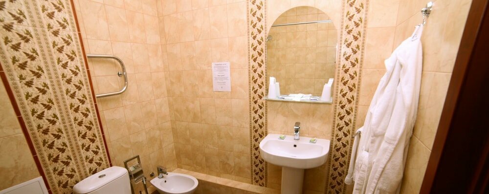 Старые застираные подушки, дырявое постельное бельё. Ковролин на полу. Не соответствует это всё цене. Отель был хорош много лет назад, как мне кажется. Сейчас….даже не могут элементарно сменить постельные принадлежности. Из средств личной гигиены — на номер для 4х гостей 2 геля, 2 шампуня, 2 мыла. Один набор беруш и два стакана