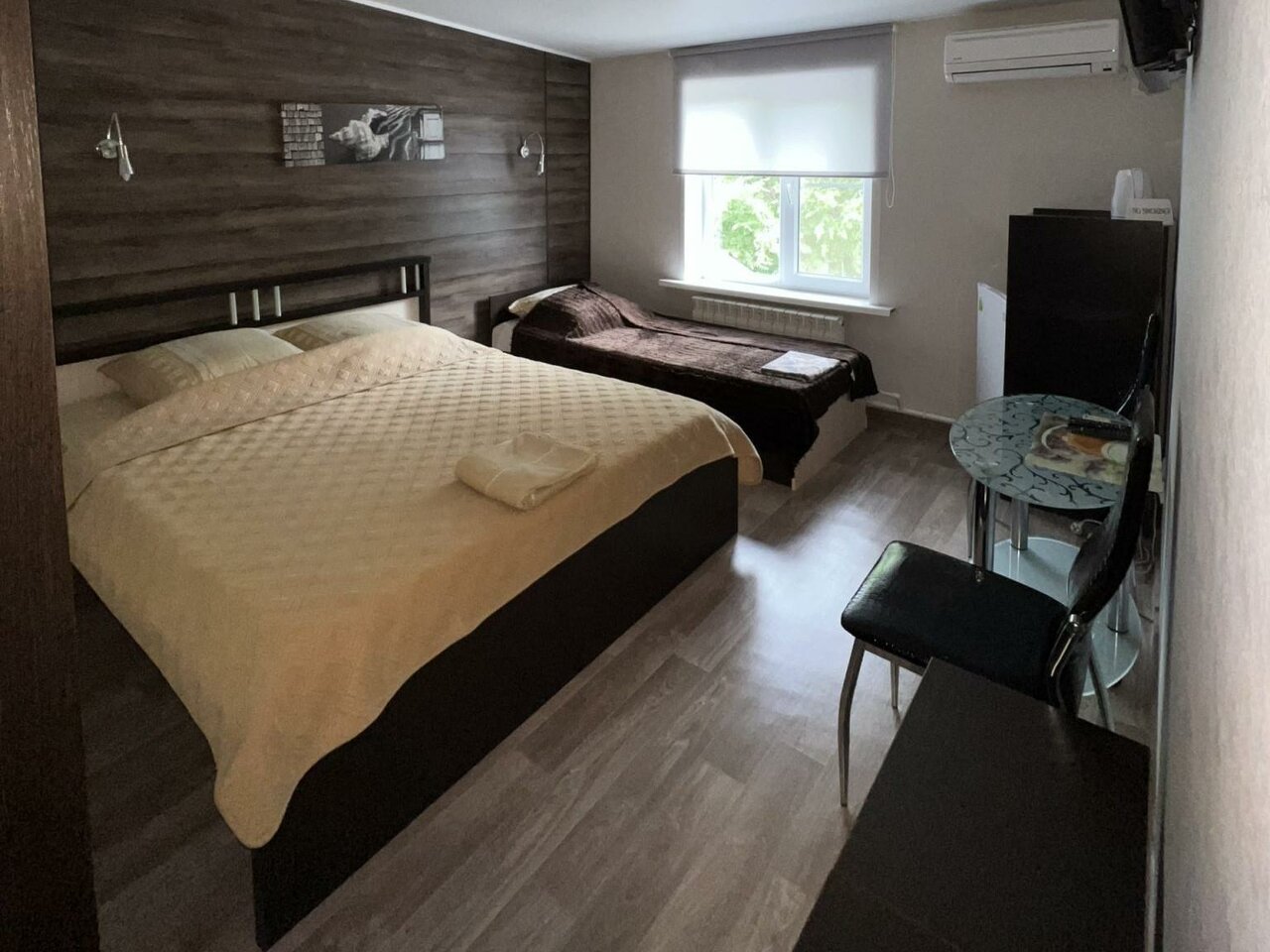 Остановились на ночлег по дороге домой с юга. Удачное расположение. Очень тихо. Имеется своя парковка. Отель для непритязательных гостей. По большому счёту есть всё необходимое. Для нас также одним из ключевых моментов была возможность размещения с животными. И по этому ожидать хирургической чистоты номера, в котором тебя поселят, было бы нелепо. В паре сотен метров находится универсам ‘Магнит’, работающих кафе или столовой рядом не оказалось и пришлось воспользоваться сервисом доставки еды. Балл снижен за отсутствие нормального давления воды. По этой причине сразу по приезду мы не смогли принять душ (за окном плюс 35!!!). Портье пояснила, что это вызвано жарой и разбором частным сектором воды на полив. Но нам-то от этого не легче:). А в целом всё соответствует соотношению цена/качество.