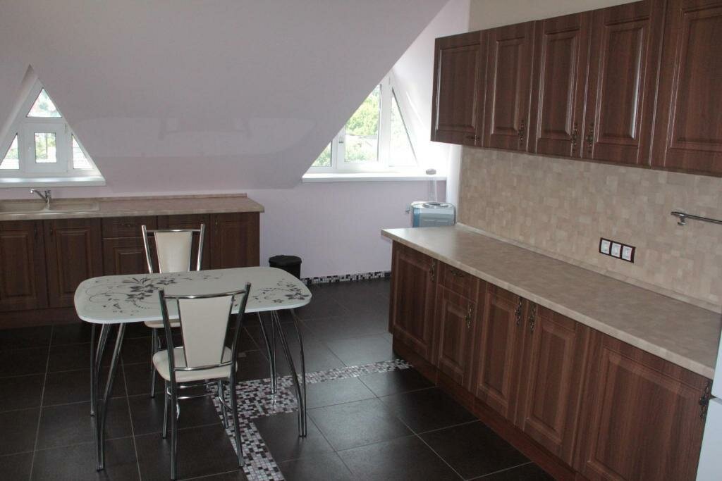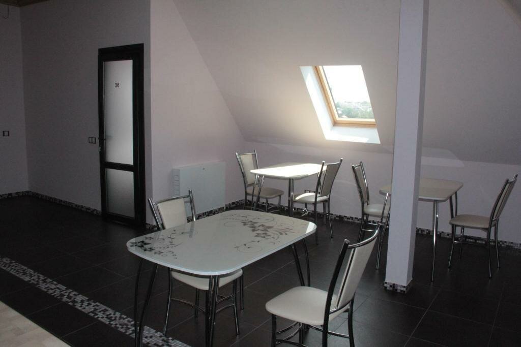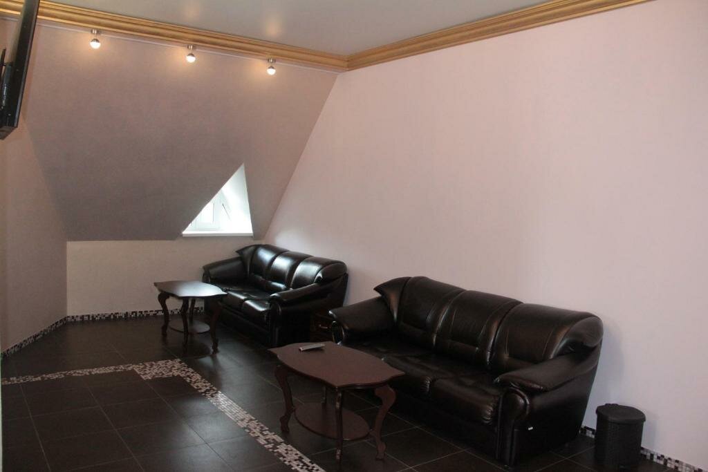 Гостиницей это назвать можно с большим трудом. Бронировали на одну ночь трёхместный номер. Дверь в номер СТЕКЛЯННАЯ, из матового стекла. Номер расположен в мансарде, окно практически в потолке. Туалет и душ это нечто, клеточка в которой малююююсенькая раковина и туалет. Причем на унитаз присесть проблематично, так как потолок идёт на скос, при росте 162, я ударилась головой, высокий человек с унитаза встать просто не сможет. Никакого кафе в гостинице нет. Это не гостиничные номера, это номера для отдыха после бани, слышимость очуитительная. Даже если бронировать на одну ночь, отдохнуть не удастся.
