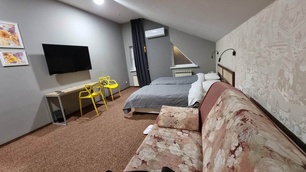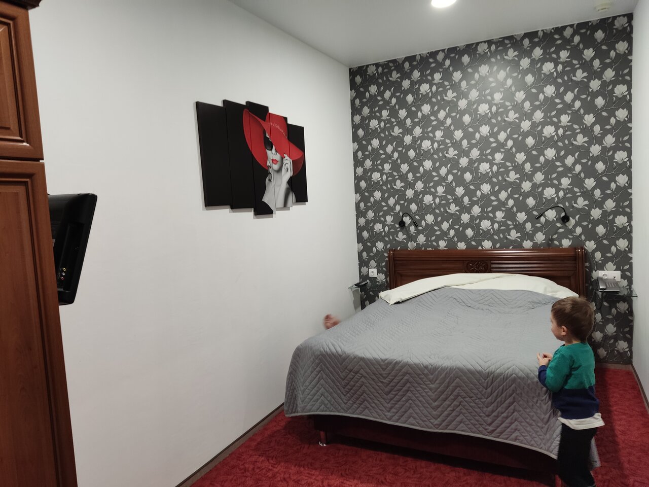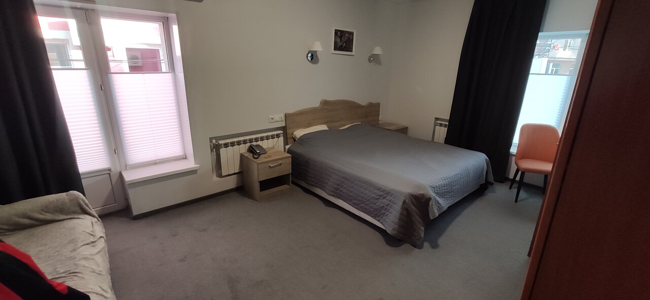 В целом хорошая гостиница, удобное расположение, неплохие завтраки. Есть небольшая парковка. Останавливался на 3 ночи: первая ночь в номере стандарт на втором этаже, вторую и третью ночь в семейном номере на 1 этаже. Что понравилось — в обоих номерах белоснежное белье ✨ Снял звезду за: 1. в номере стандарт был специфический запах, затертый ковролин, отсутствовали тапочки, на потолке следы ремонта (прям резко в глаза бросалось) 2. во втором номере семейном — в целом все понравилось, к номеру претензий нет! НО! 2 дня подряд с утра и до вечера были ремонтные работы в гостинице, целый день стучали, пилили… Хотел отдохнуть днём перед вечерней корпоративной встречей по работе… так и не удалось ((( Ещё хотелось бы отметить отсутствие в номерах чайника, за кипятком нужно ходить на кухню. В целом — твердая четверка! Можно рекомендовать.