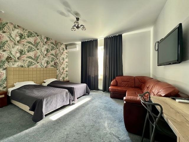 Очень даже приличная гостинница. Стандартный номер на двох. Большая кровать. Все чисто. Замечательный, доброжелательный персонал. Приехали поздно. Приняли, накормили. Завтрак на выбор. Мы очень довольны. Рекомендуем.